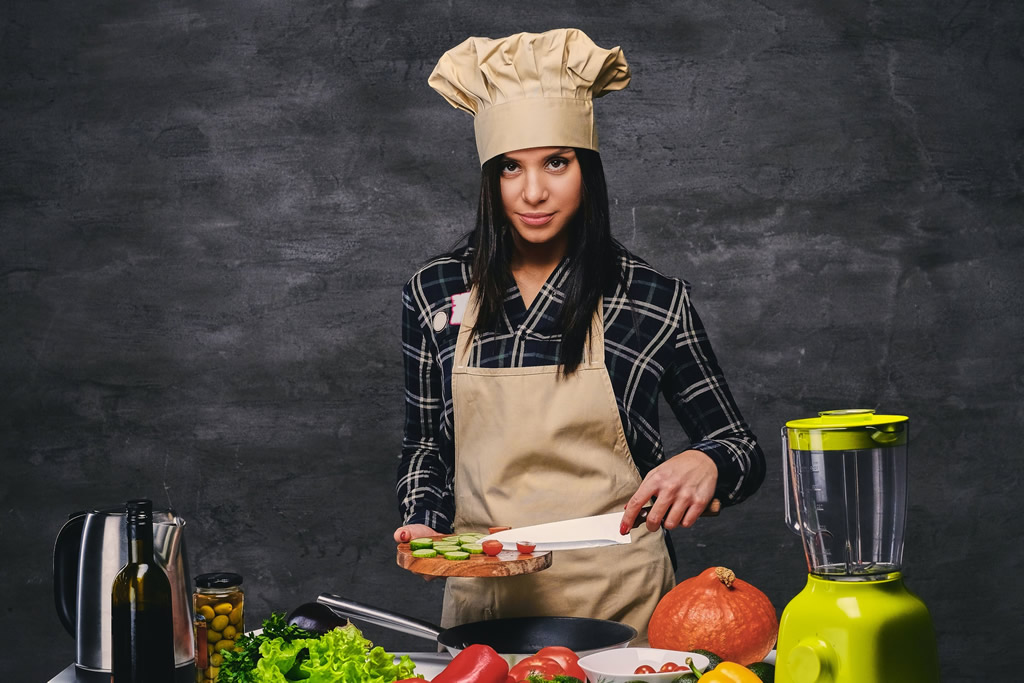 例えば、フラワーショップが広告のために新しいポートレートを必要としている場合、写真の前景に花やグリーンを置くことで華やかさや自然の雰囲気を作り出すことができます。シェフの場合だと、食材と調理器具を小道具として前景に置くことで、ハウススタジオでの撮影であっても厨房にいるような雰囲気が出せます。このように、被写体を装飾する目的でも小道具は利用されます。