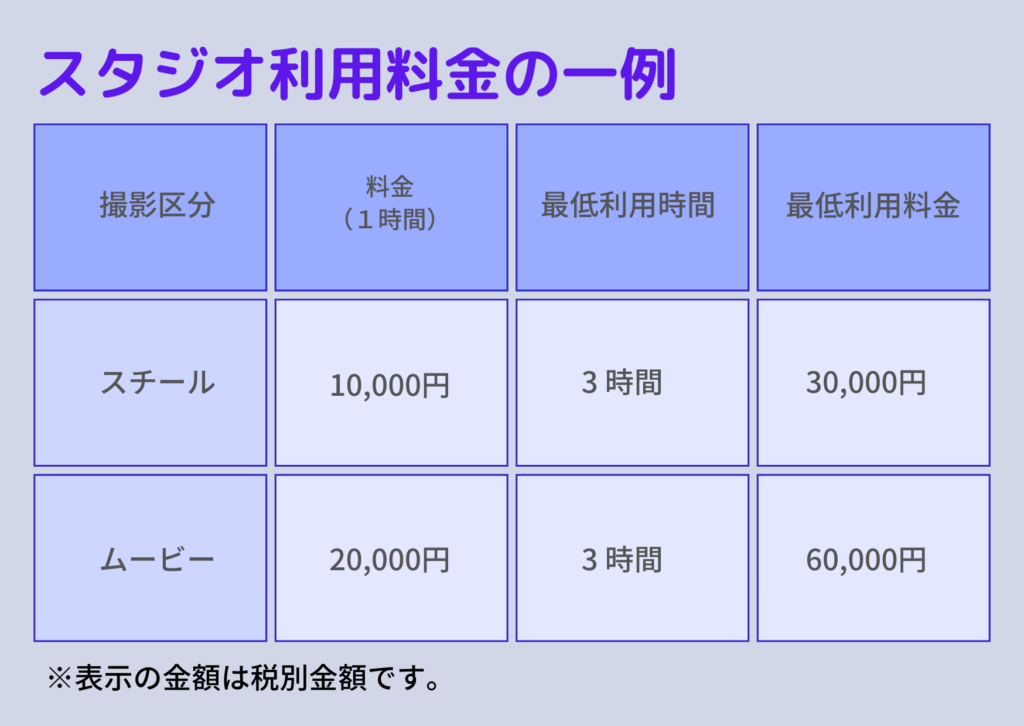 では、スタジオの料金表の一例を見てみましょう。