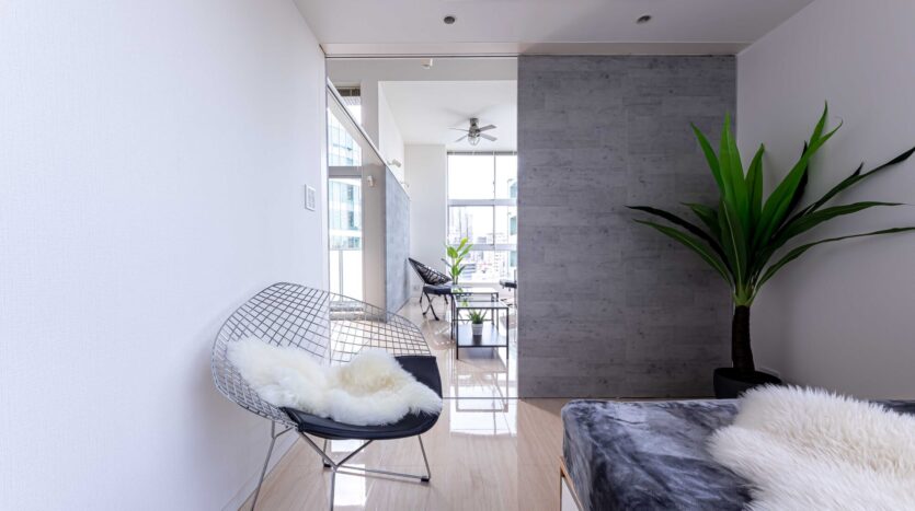 1LDK のロフト付きで、80㎡を超える広さを持っています。2面採光で4m高の天井がある開放された空間となっていて、大きな窓からは新宿の景色を一望できるので、タワーマンションにいるかのような雰囲気で撮影ができます。日が暮れてからの撮影も綺麗です。コンクリート調の間仕切りは可動式なので、シーンに合わせてご利用いただけます。生活感ある住居風やオフィス風のシチュエーションの撮影が可能です。ロフトを利用した俯瞰撮影をはじめ、ドラマ、CM、ポートレート、雑誌撮影などに適しています。