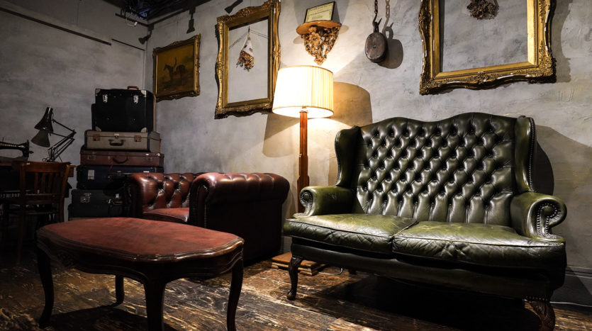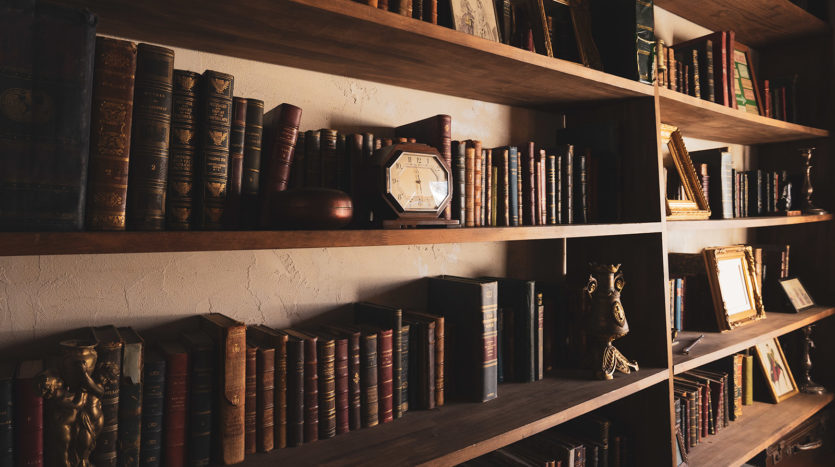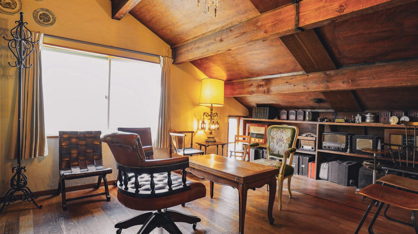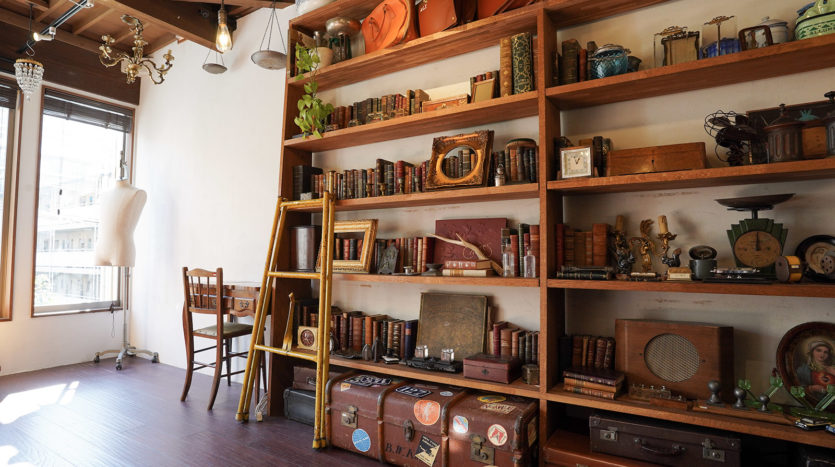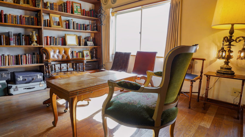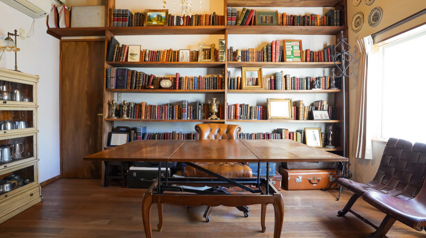 Aスタジオは、ヨーロッパの書斎をイメージ。100年以上前の洋書が1000冊以上陳列されている空間です。