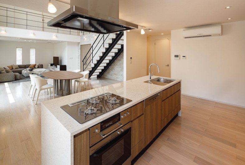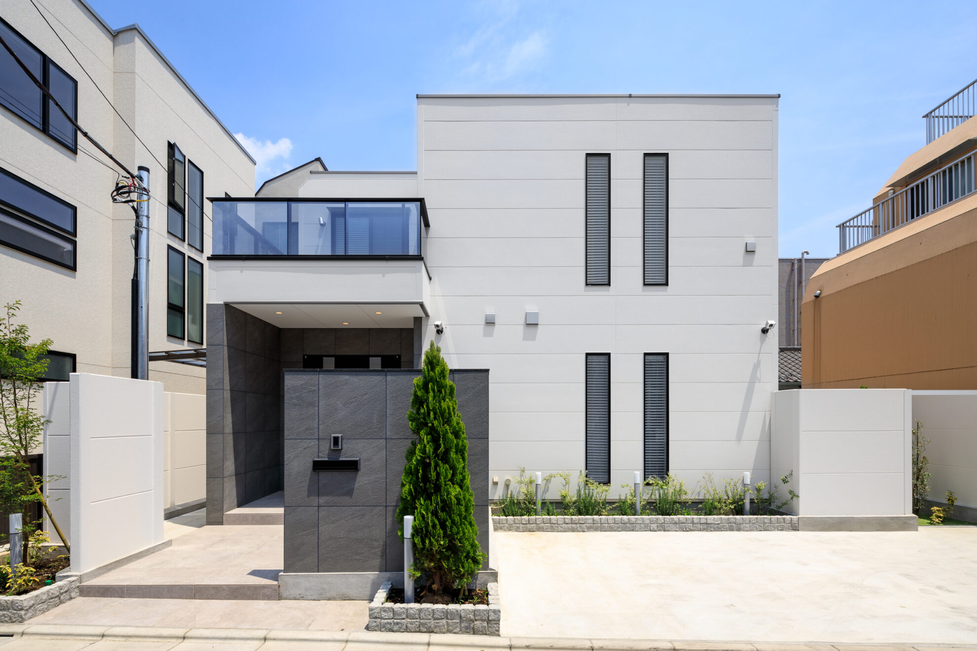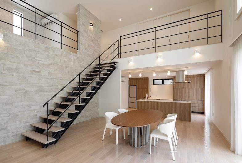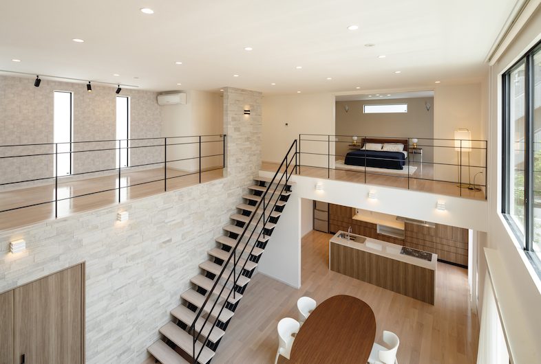 ミニマルなデザインの邸宅は吹き抜け構造で、自然光がたっぷり降り注ぐ空間となっています。1階リビングは約52㎡で天井が高く設計されているため、俯瞰撮影としてもおすすめです。キッチンはメインとサブの2種類ご用意しています。充実したキッチン設備もあるので、料理番組やYouTube動画、雑誌、CMなどの撮影にも適しています。2階にはルーフバルコニーも併設していて、開放感ある撮影が可能です。モダンテイストの洋室、廊下、キッチンなど、さまざまなシーンに対応できるスポットが多数あります。