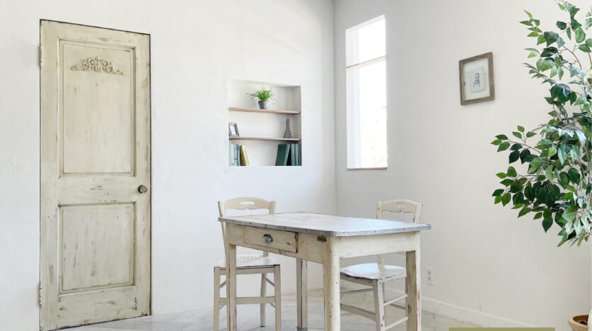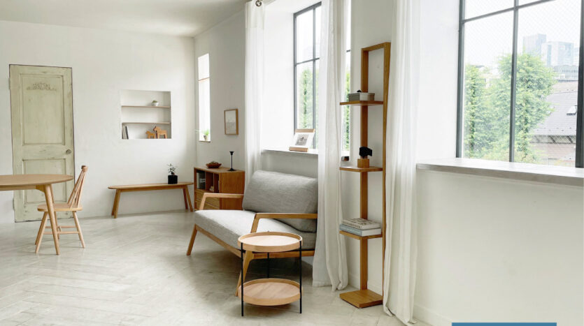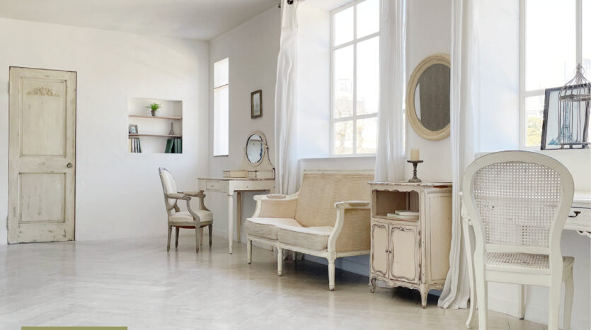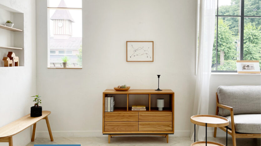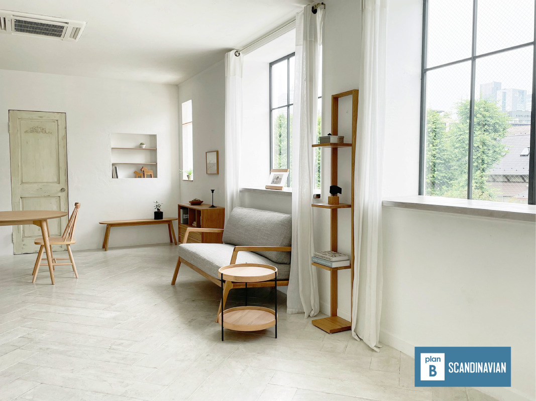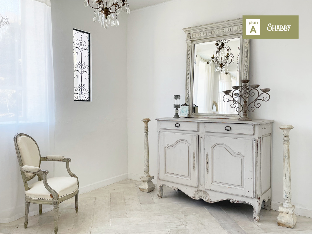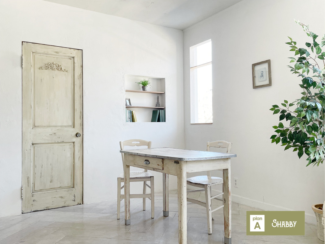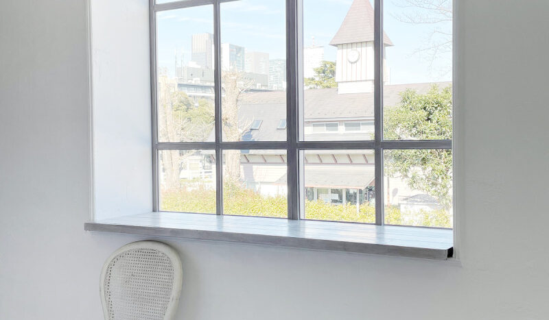 スタジオはホワイトを基調とした空間で、そこに置かれる家具は、シャビーシックな家具が置かれる【プランA:シャビー】と、トレンドの北欧風家具が置かれる【プランB:北欧風】から選択が可能です。撮影イメージにより家具のプランを選択し、空間を彩ることができます。広くとられた出窓からは神宮の森が見え、やわらかな光が入ります。出窓は窓枠や天板を変更し、バリエーションを出すこともできます。
