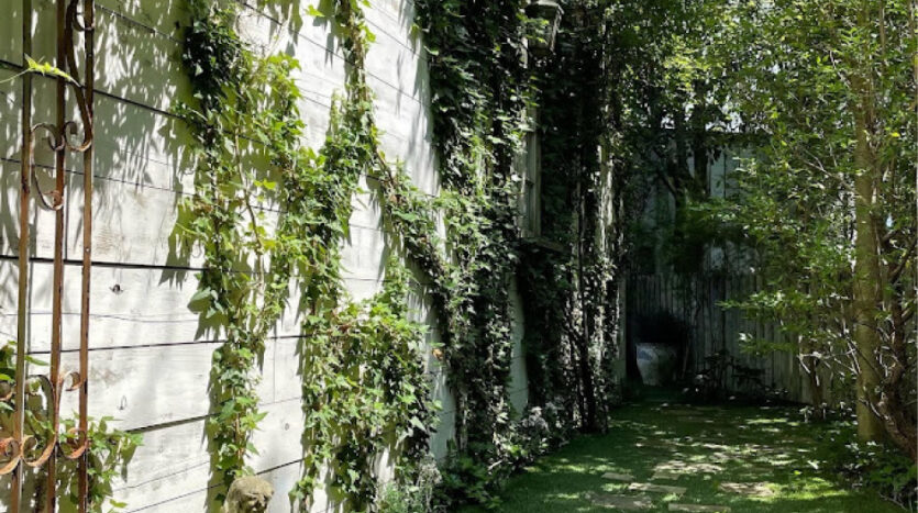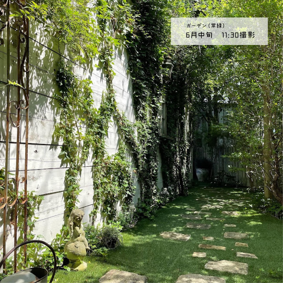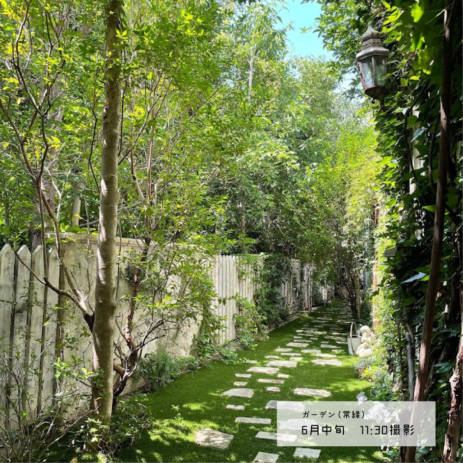建物2階にスタジオがあり、1階と2階別フロアには撮影小道具のレンタルショップが併設されています。1階外にはプロヴァンスを思わせる小道のようなガーデンがあり、常緑の草木は季節問わず、さわやかな空間を演出します。