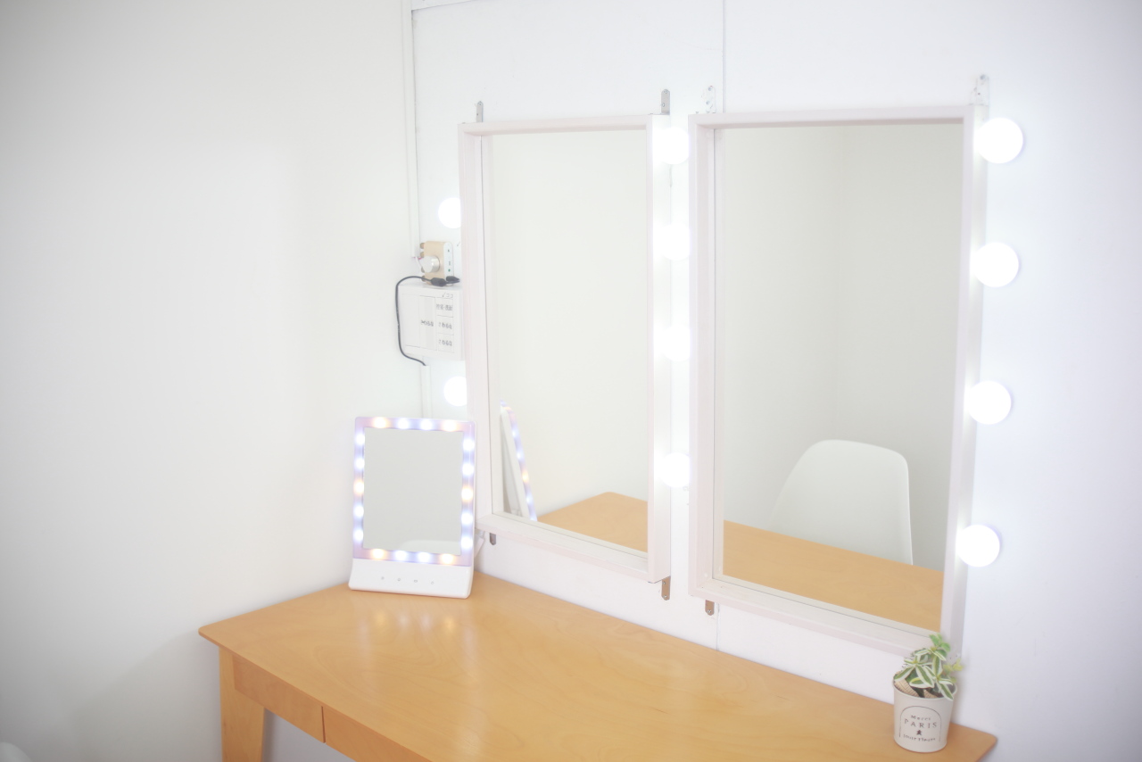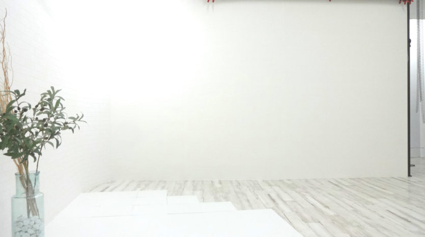 白を基調としたスタジオ内は、広々としていてフラットな構造になっています。1階の店舗はバリアフリー。ご年配の方や体の不自由な方、ベビーカー、車椅子の方もスムーズにご利用いただけます。機材や撮影道具の搬入もばっちりです。スタジオ内にある備品、家具、機材、小道具は無料で提供しています。独立したメイクルームも完備されています。