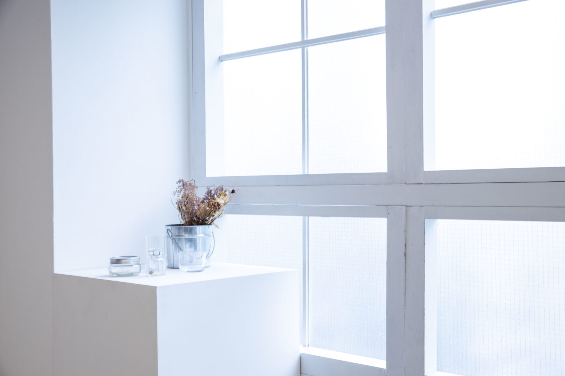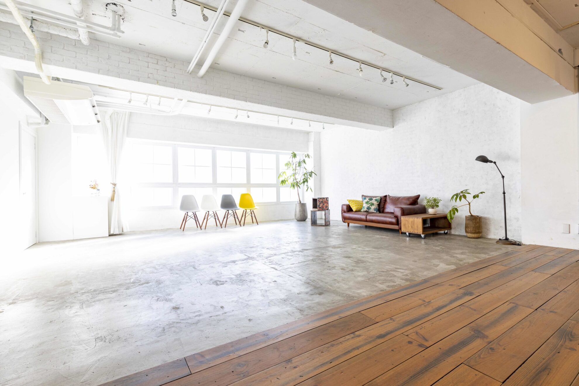 青葉台エリアにあるビルの5Fと6Fがハウススタジオとなっており、壁一面の窓から入る自然光がコンクリートと白壁の室内を包み込みます。