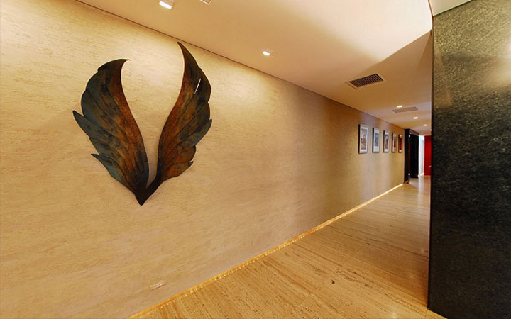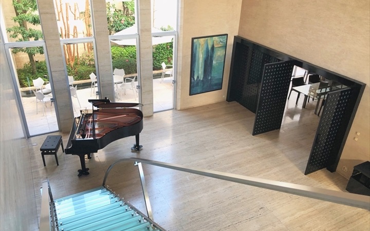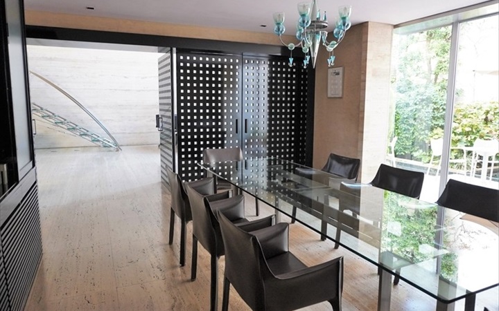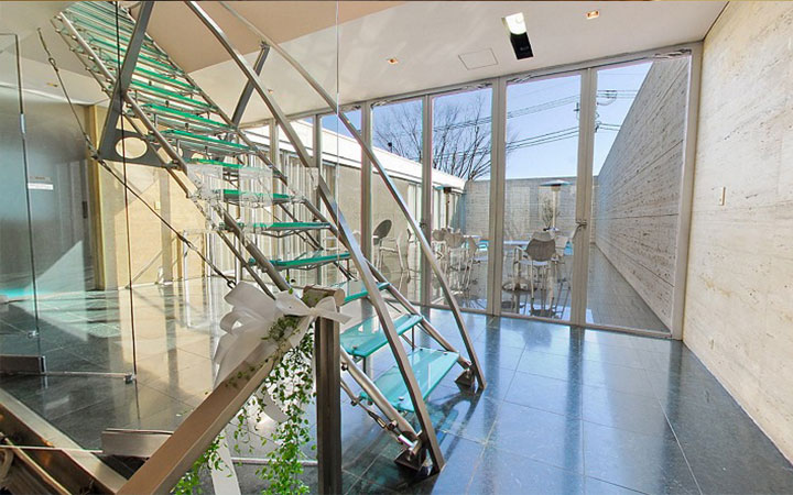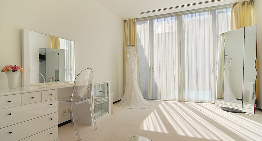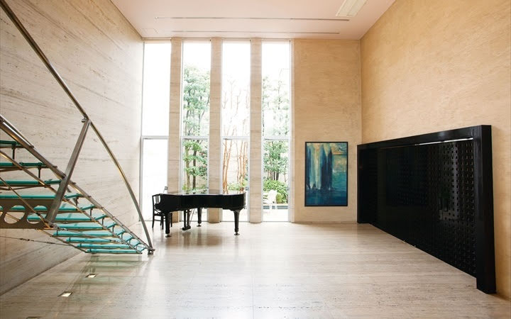 惜しみなく大理石を使ったエントランスは、靴のまま入室できるスタイリッシュで美術館のような空間。吹き抜けがあるリビングルームはグランドピアノが備えられ、5.5mと高い天井が開放的な空間としています。そのほか落ち着いた雰囲気の書斎付きAVルームや自然光溢れるダイニングルーム、檜のカウンターを配したプライベートバー、モダンなテイストの和室など、セレブな生活の様々な場面での撮影が可能です。