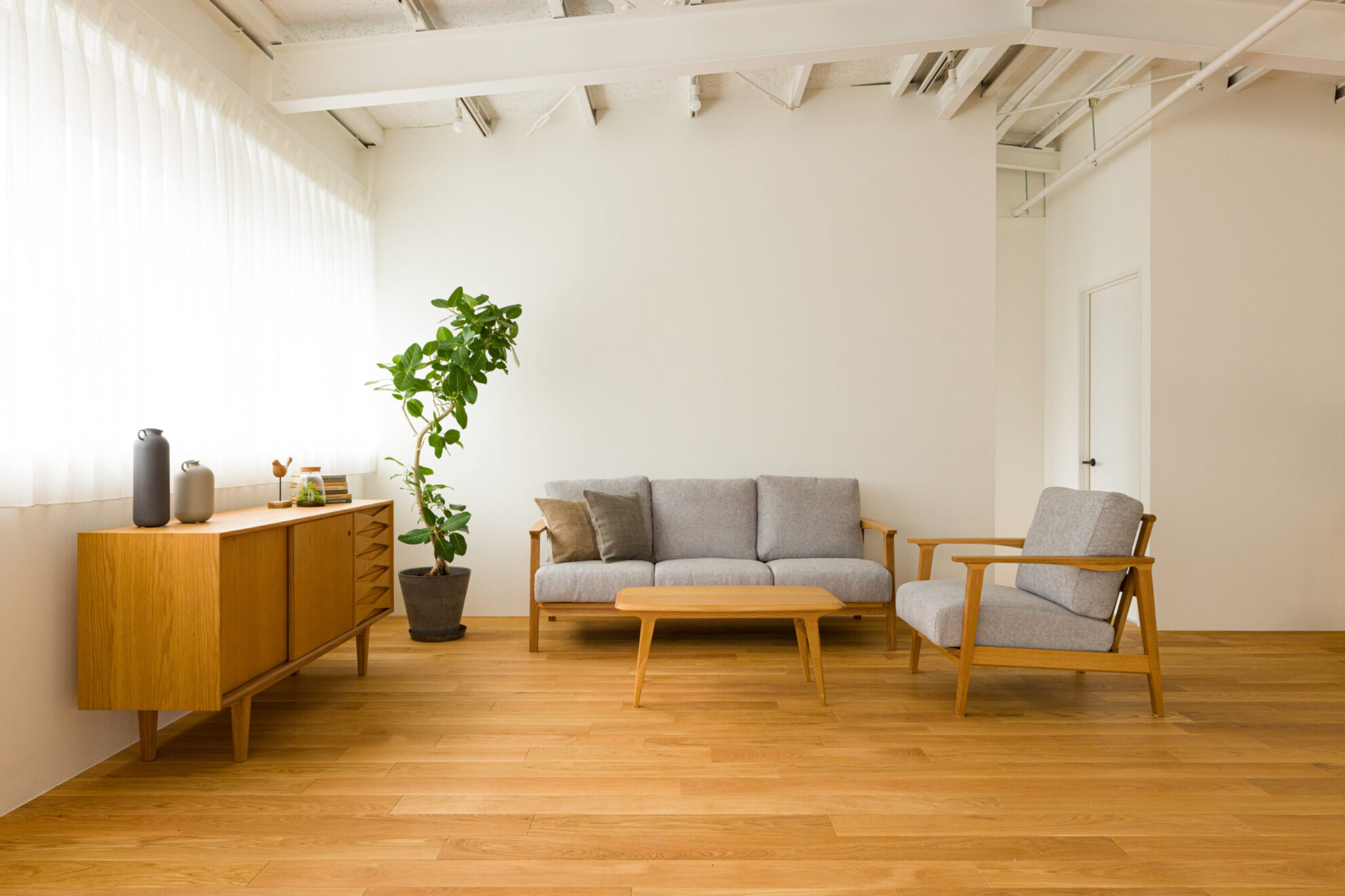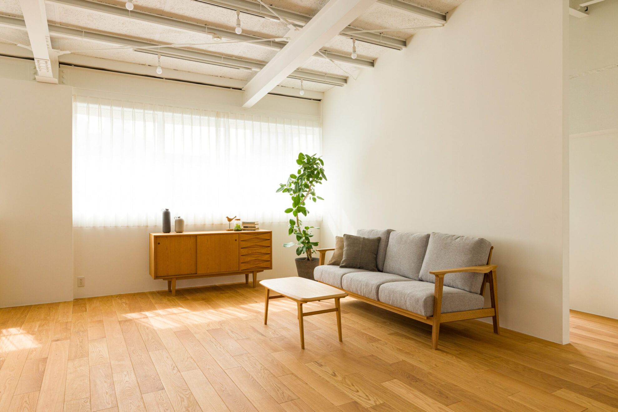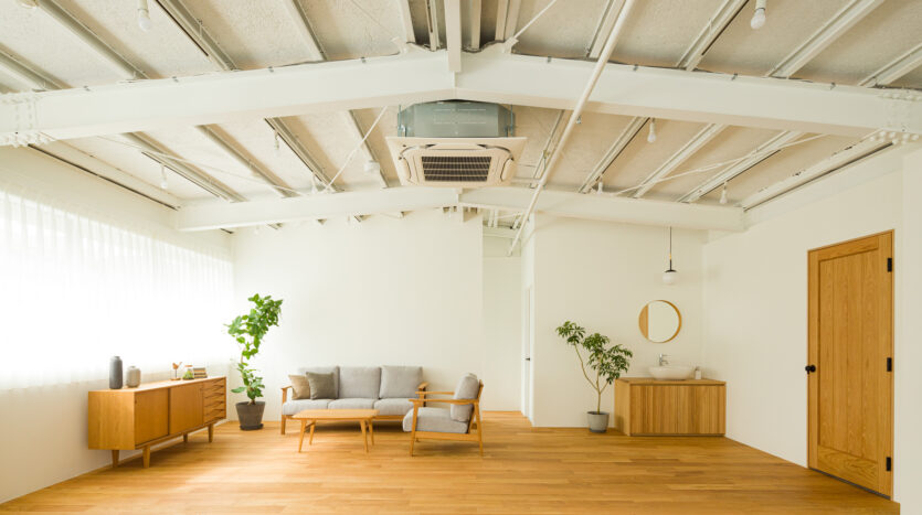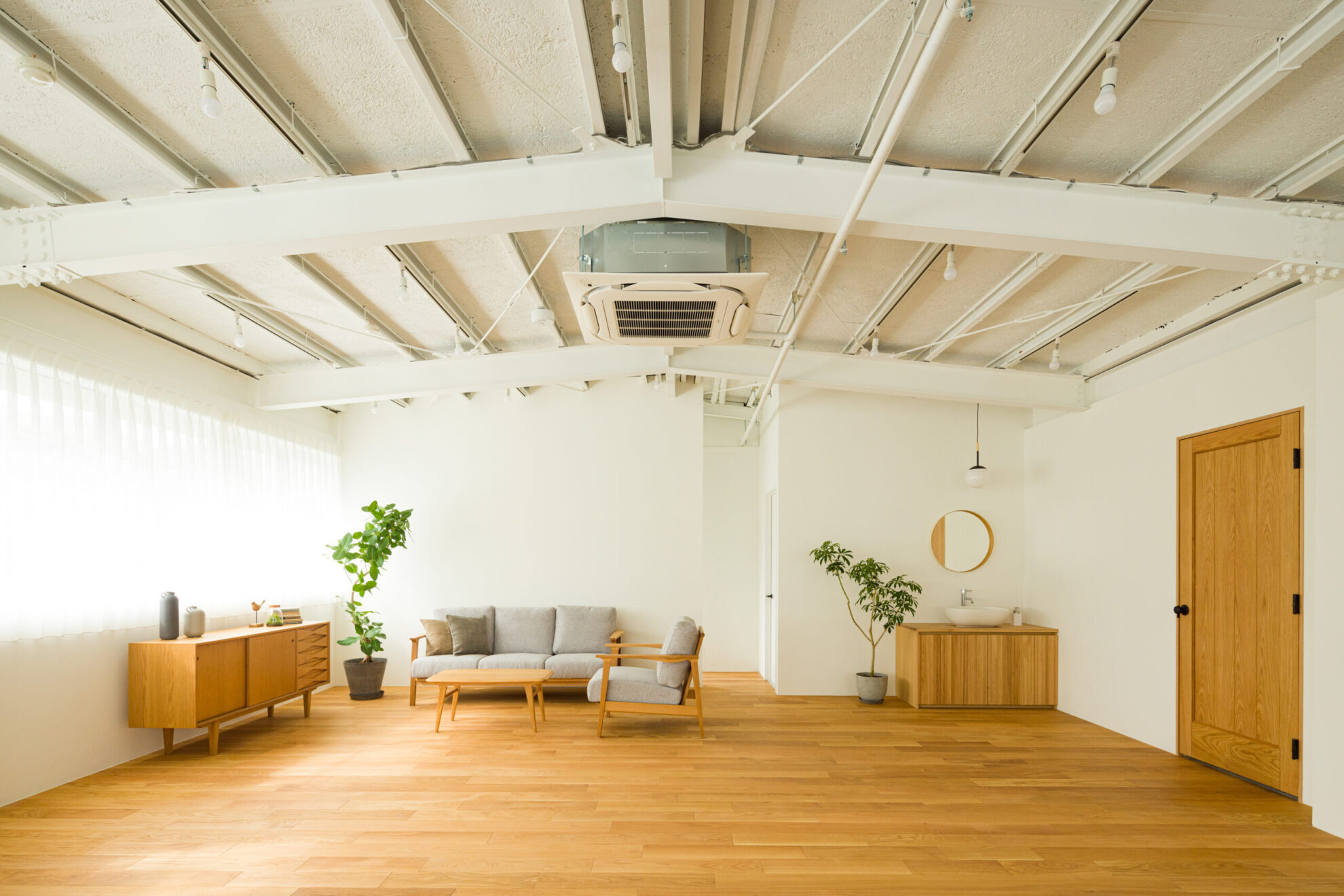 120㎡の広々とした空間。ビルの最上階7階に位置し、2面に渡る大きな窓からは自然光が充分なほどに差し込みます。