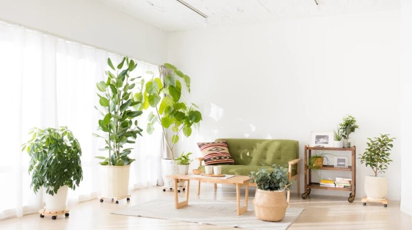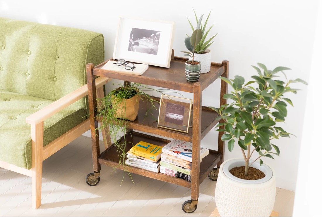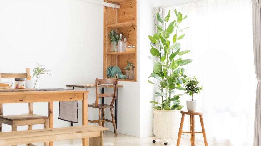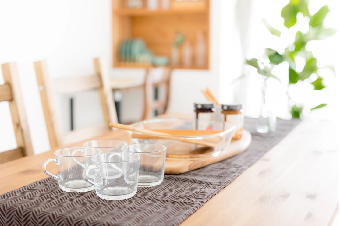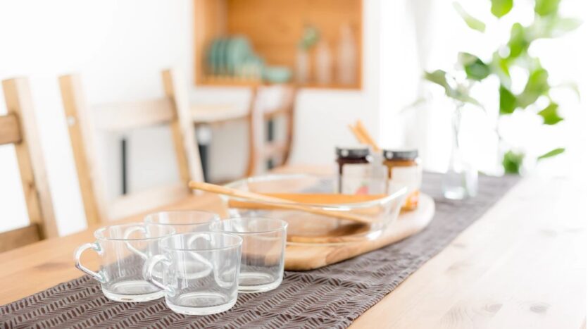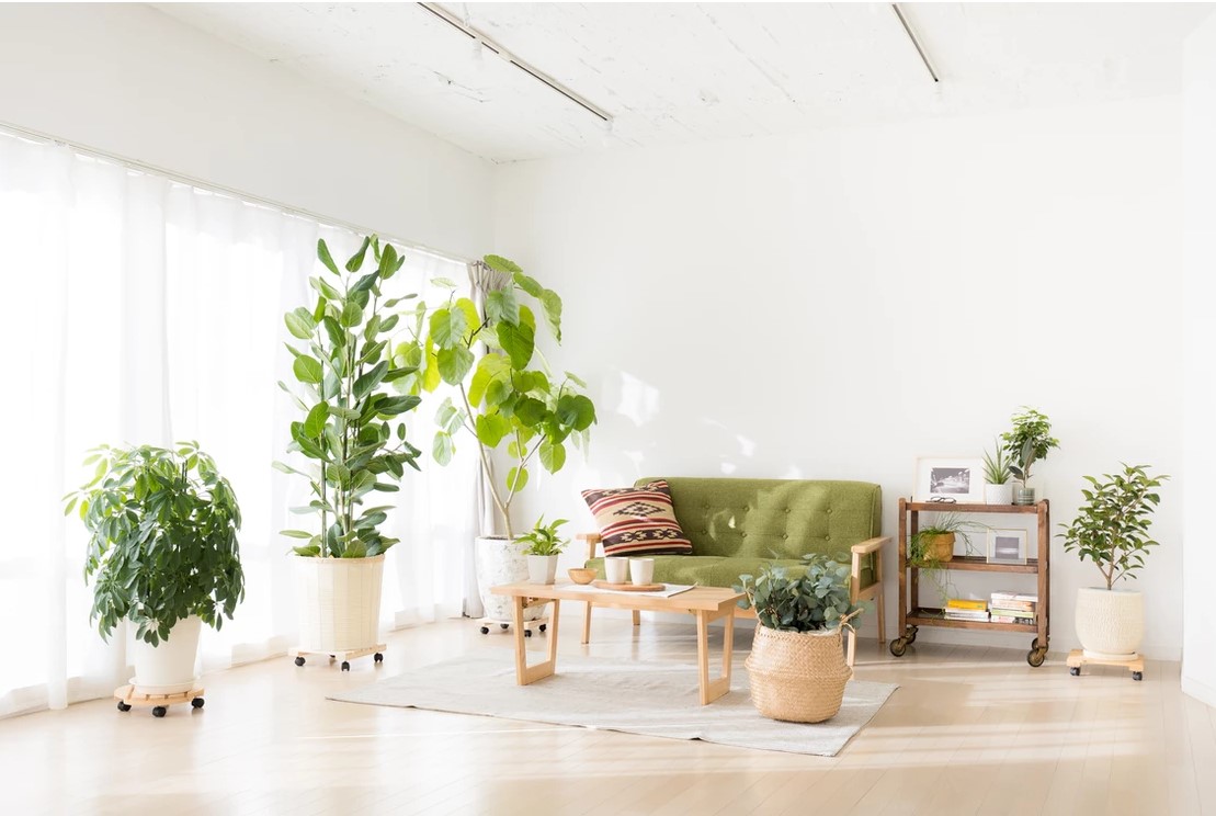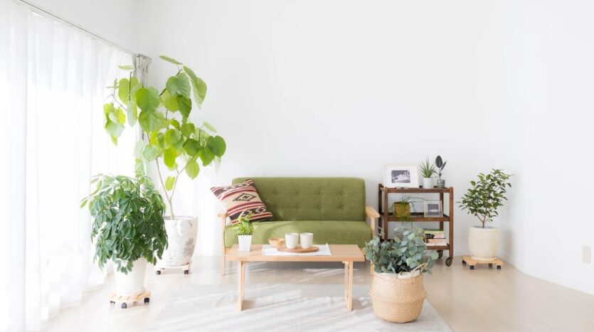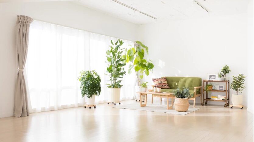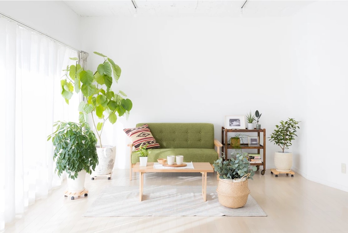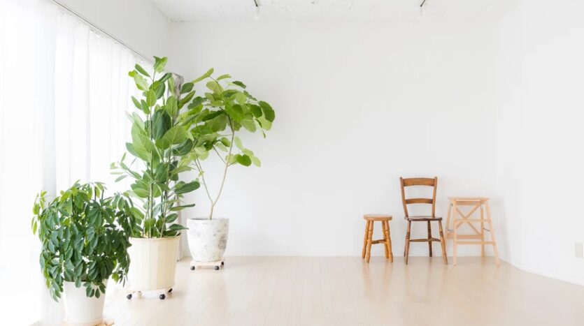 自然光の入るシンプルな白壁のリビングエリアとダイニングエリアにはナチュラルテイストのソファやテーブルが置かれ、グリーンや小物も充実し、アクセントとして利用することで幅広い撮影シーンに対応することができます。