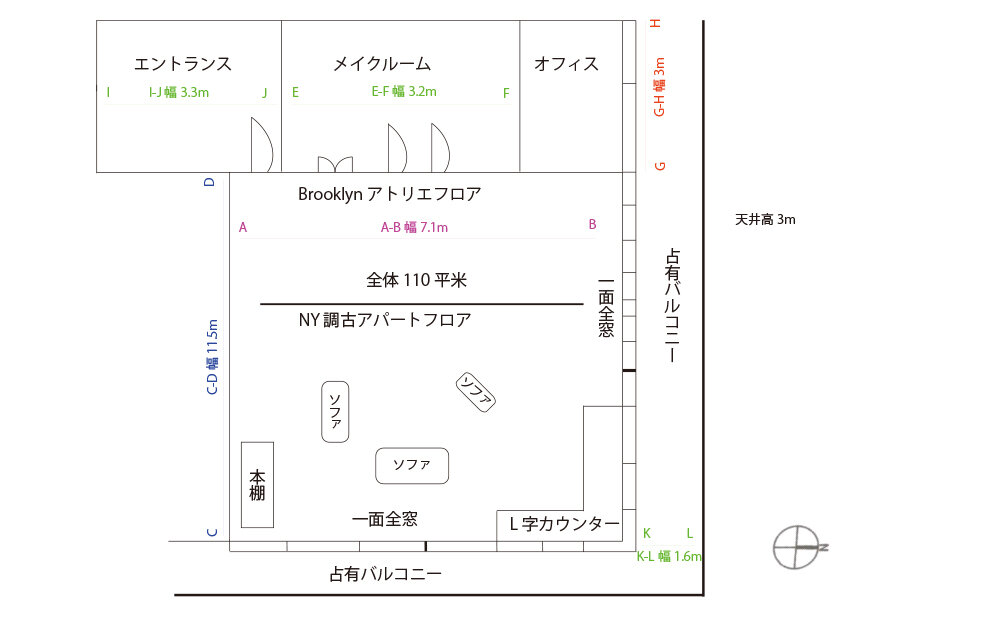 天井高さ 3m