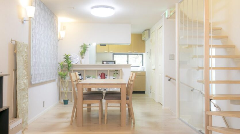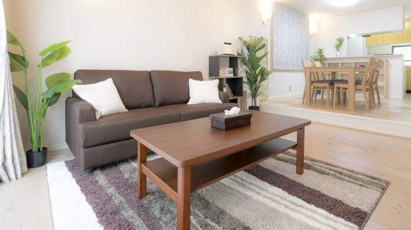 柔らかな自然光が入る室内は、白を基調とした壁材と淡色系の床材で、ナチュラルでアットホームな雰囲気の空間です。