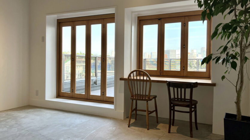 広さは120㎡で2つの部屋も広いバルコニーも自由に利用できます。2面のバルコニーは、新宿御苑から神宮外苑方面まで見渡せる眺望も特徴です。