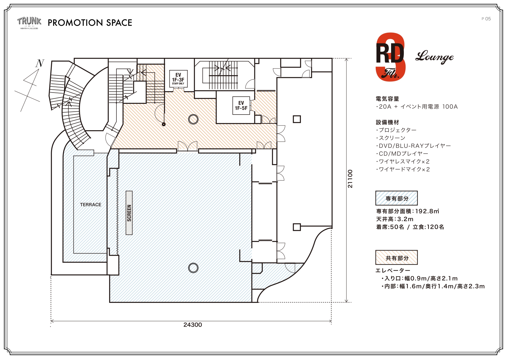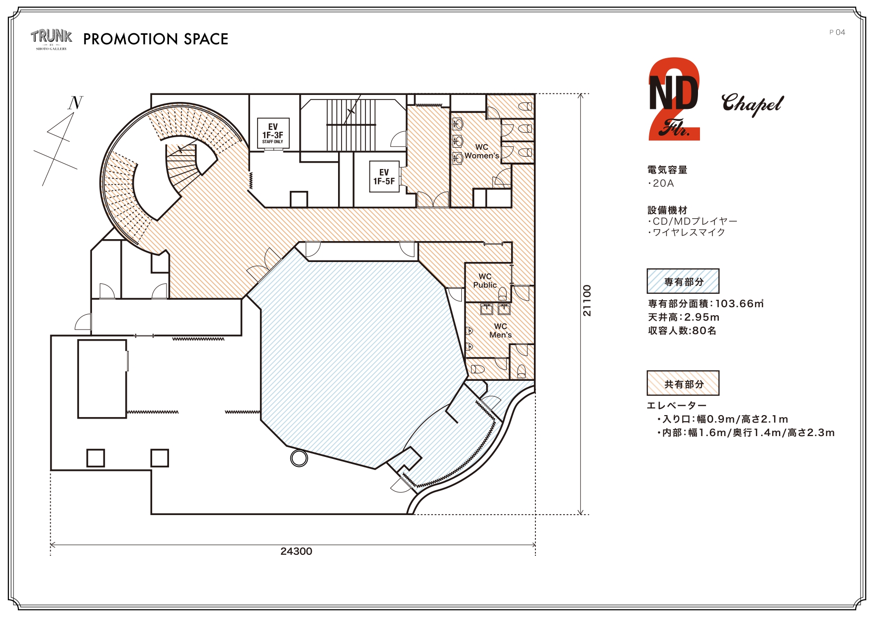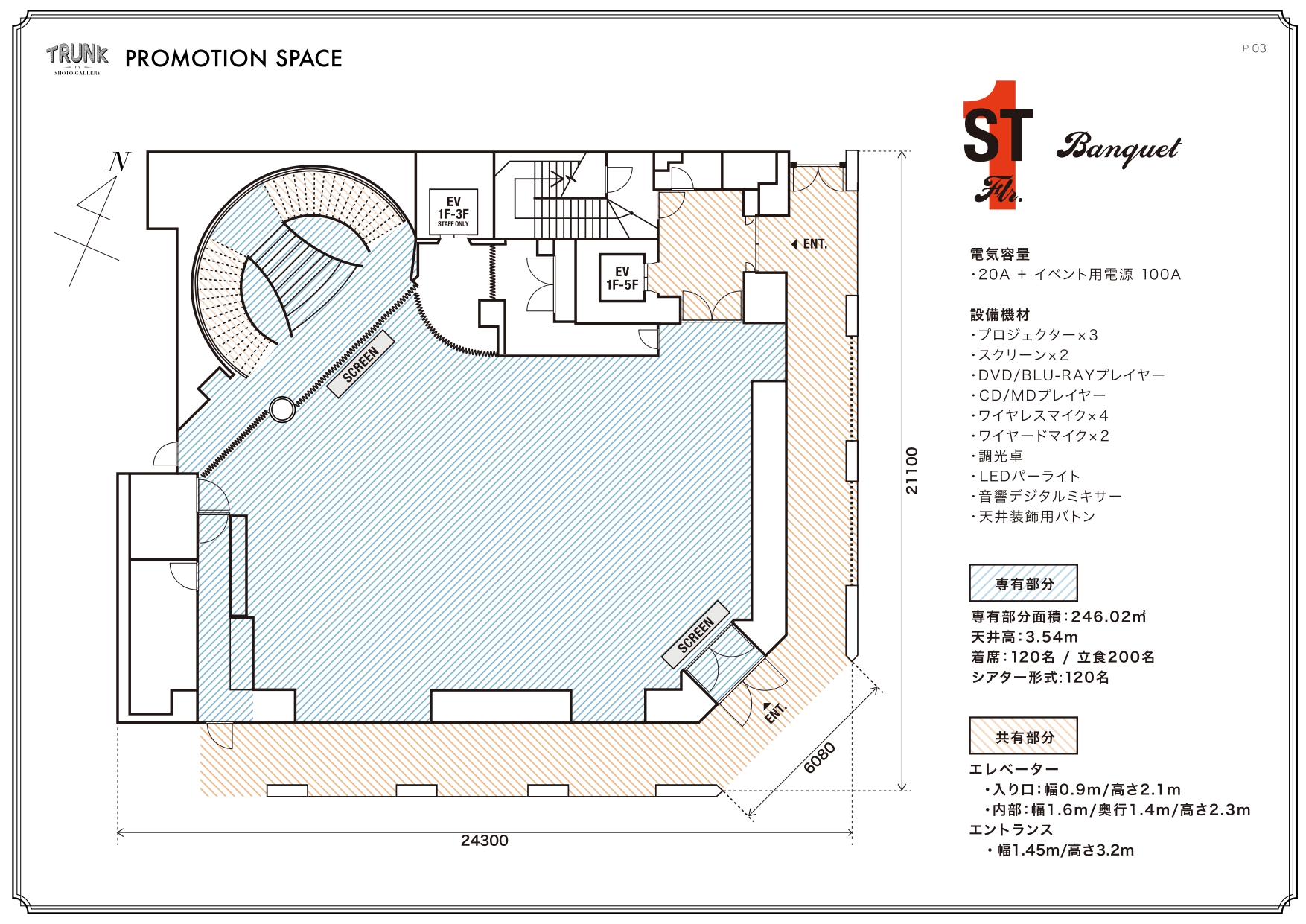 ■1F 246㎡の広い空間なので、大掛かりなつくり込みなども可能。
