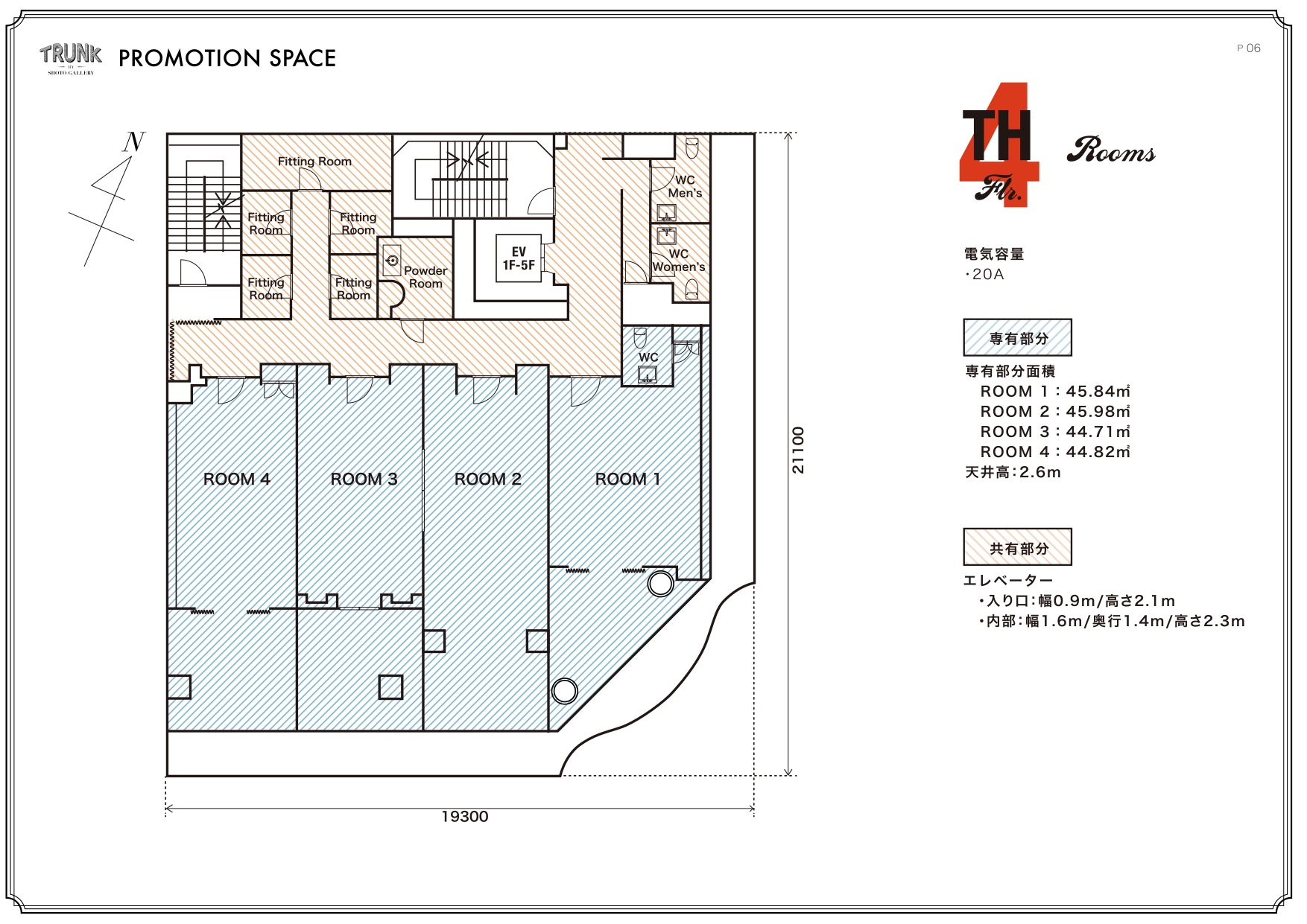 ■4F 45㎡のテイストの異なるお部屋が4つ並んだフロア(部屋毎の貸出)