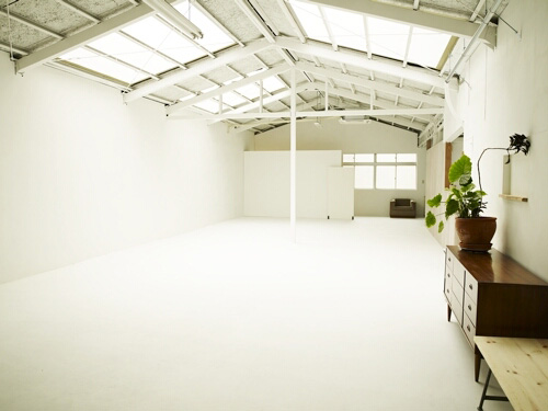 平屋建ての専用スタジオは、大きな3つの天窓から柔らかな自然光がたっぷりと降りそそぎます。この天窓は、黒幕で遮断したり、紗幕で光をコントロールすることができ、多彩な趣の撮影をすることができます。