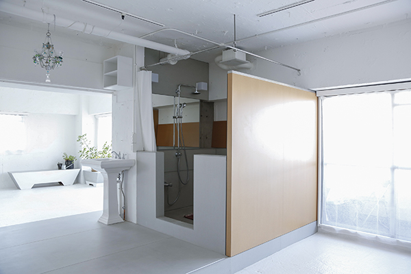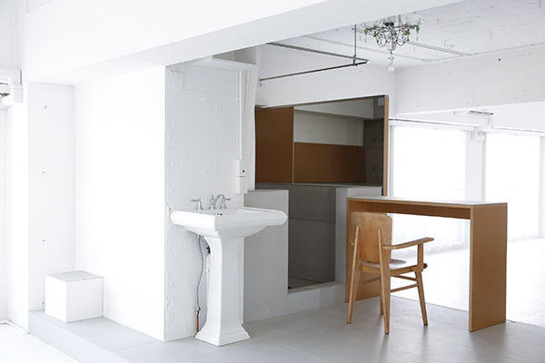 スタジオは大きく2つにエリア分けされており、1つは白壁、白床、ホワイト一色に統一されたフリースタジオスペース。もう一方は、白を基調としシンプルで生活感ある家具が設置されたリビング、ダイニングスペースとなっています。そのほか、広々とした実際に調理可能な本格的なキッチンやシャワースペースも用意されています。