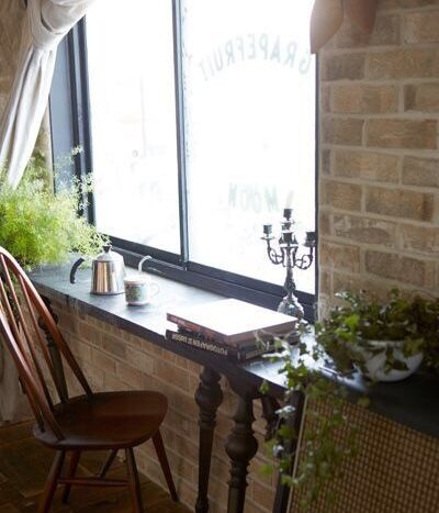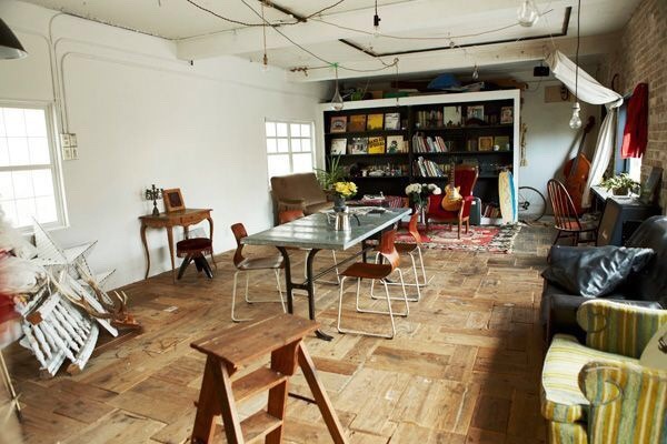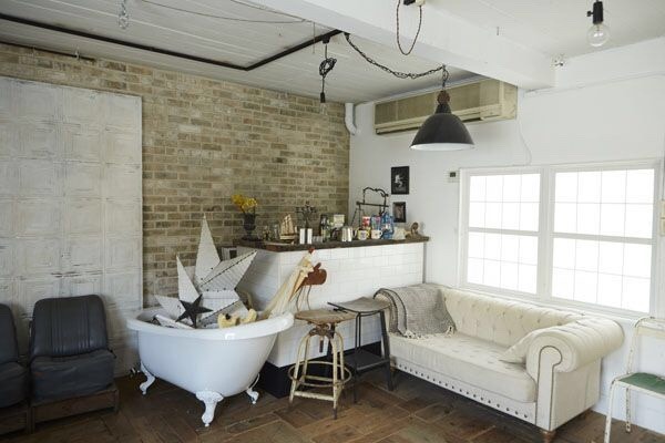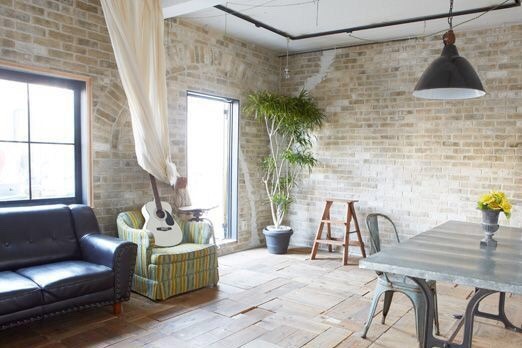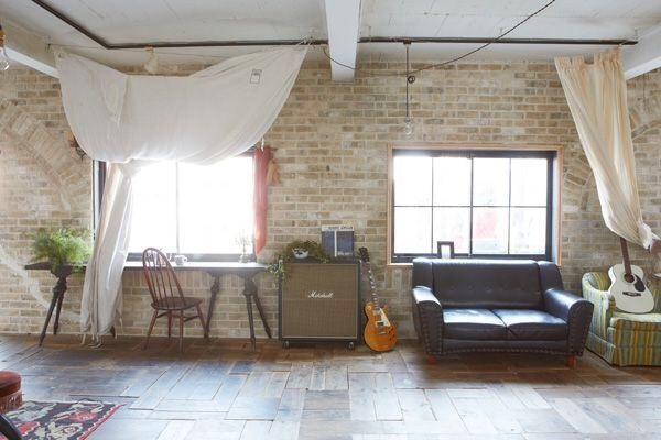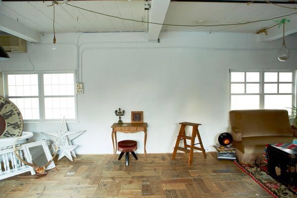 ブルースが似合うヴィンテージ感あふれる室内は、物撮りやモデルを使った撮影に最適。室内の壁は、白壁と色褪せた風合いのレンガ壁に貼り分けられ、古材を使った味わいのあるフローリングや白に塗装されたと天井板とのコンビネーションがアーティスティックな雰囲気を醸し出しています。黒枠の窓、選び抜かれた家具、小物類もヴィンテージなものが用意され、可動式の壁など目を引くものがあります。