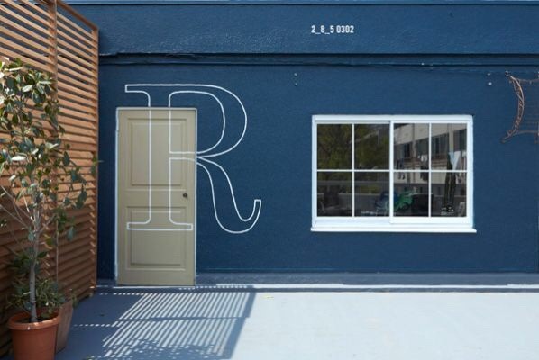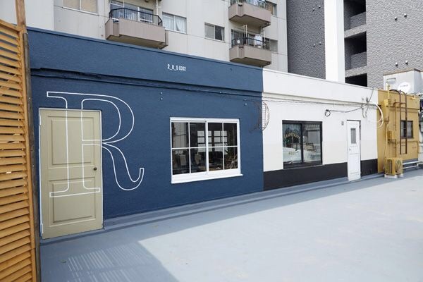 一歩外に出ると大きなテラスが広がり、白、ネイビー、キャメル色に塗り分けられた外壁が、モデル撮影の背景として人気があります。