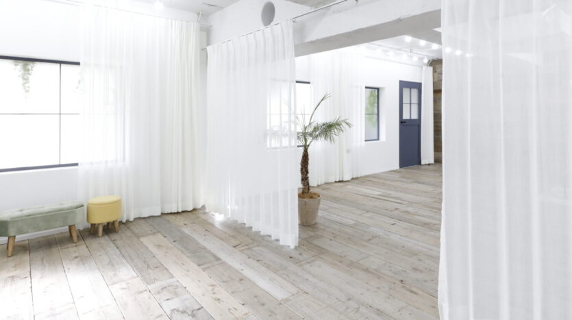 どちらのスタジオも全面に自然光が差し込むサンルームがあり、自然光を使った撮影はもちろん、窓裏ライティングも可能です。