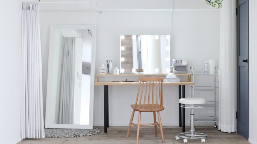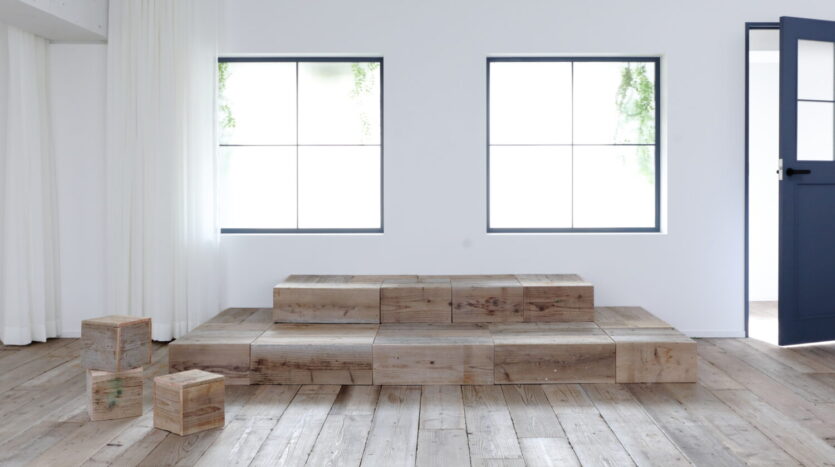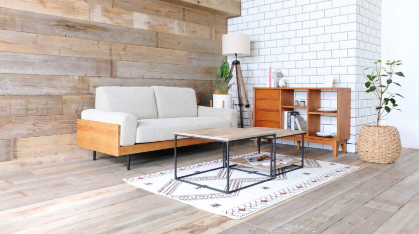 Bstはエイジングウッドと白を基調としたスタジオで、スタジオ全体に敷き詰められたウッドの床に壁面は床材と同じウッドの壁、シンプルな白壁、白のメトロタイル、白壁にダークグレー枠の出窓があります。ソファやテーブル、小物類を組み合わせ、さまざまな角度からシーンを演出できます。