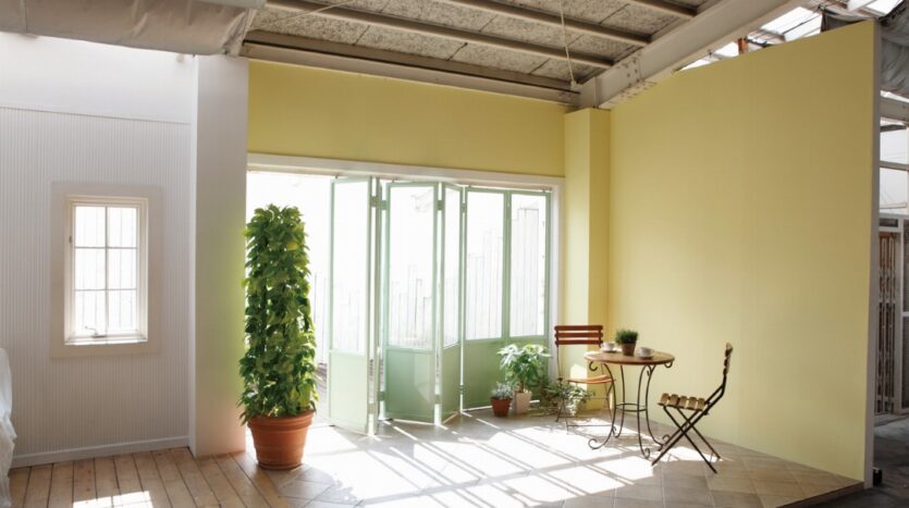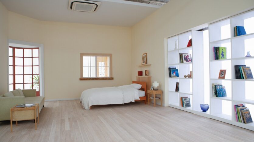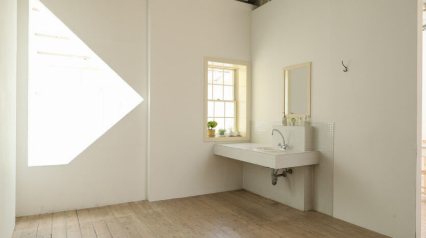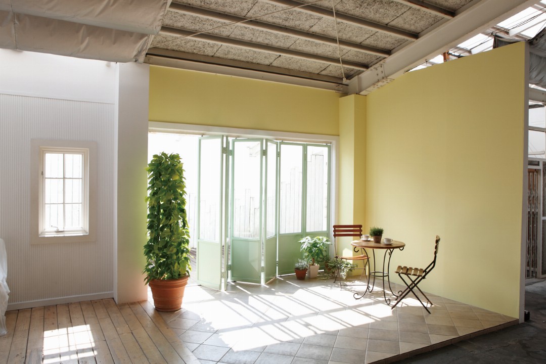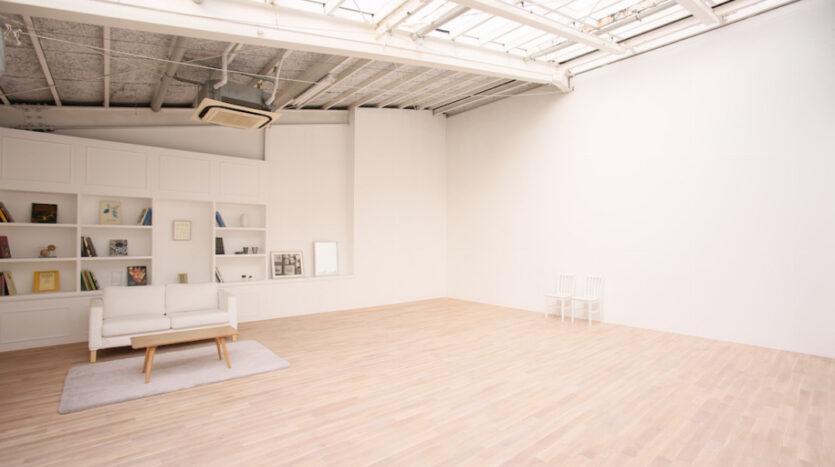 多様な生活シーンが撮影できる2Fの「SKY」は、自然光が柔らかくふりそそぎ、広い空間があるため建込や引きを気にする必要がありません。ドラマや映画、PV・MVなどの大型な撮影にも対応できます。スタジオ内には実際に使用できる大きなバスタブを設置したバスルームや洗面所、キッチンといった水回り設備も設置され、その他、生活にまつわるベッドルームやリビング等のシーンも撮影できます。また、常備している家具・植物も無料で使用することができます。