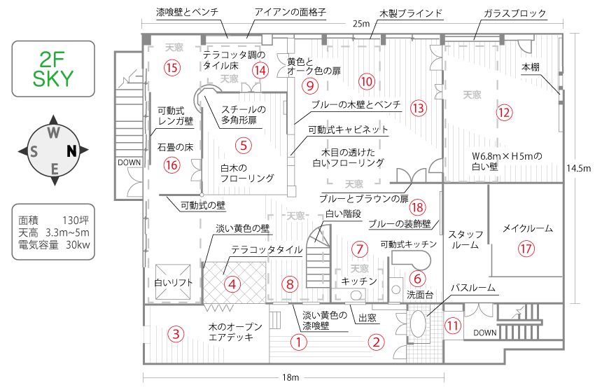 2階層ともにスタジオとなっており、いずれも130坪の広さがあります。