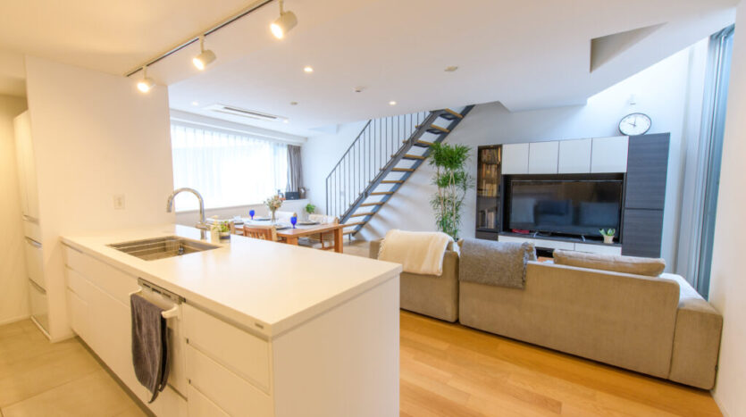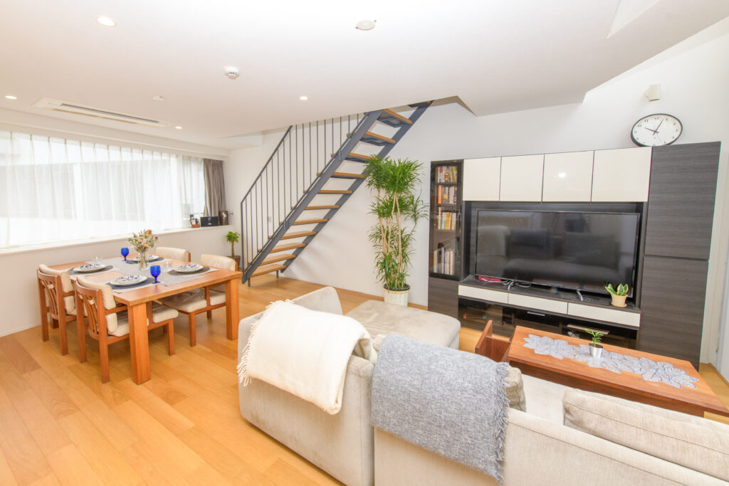 小田急小田原線 祖師ヶ谷大蔵駅から徒歩圏、世田谷 砧エリアにある、白を基調としたメゾネット仕様のハウススタジオ。