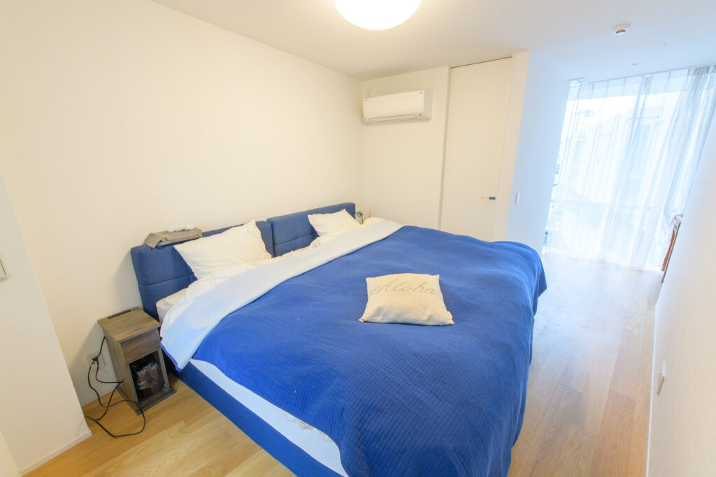 メゾネット部分には約10帖のベッドルームとウォークインクローゼットとなっており、大きなサイズのベッドが設置されています。