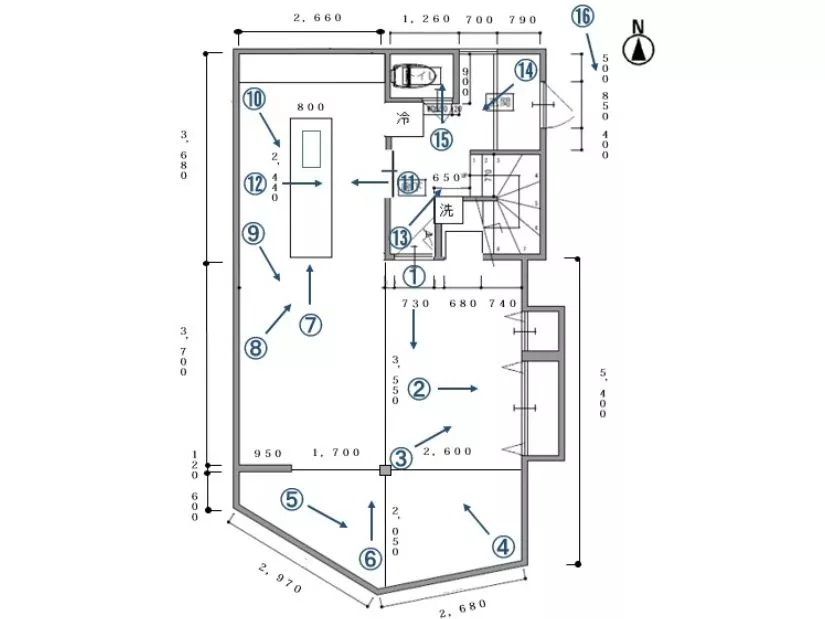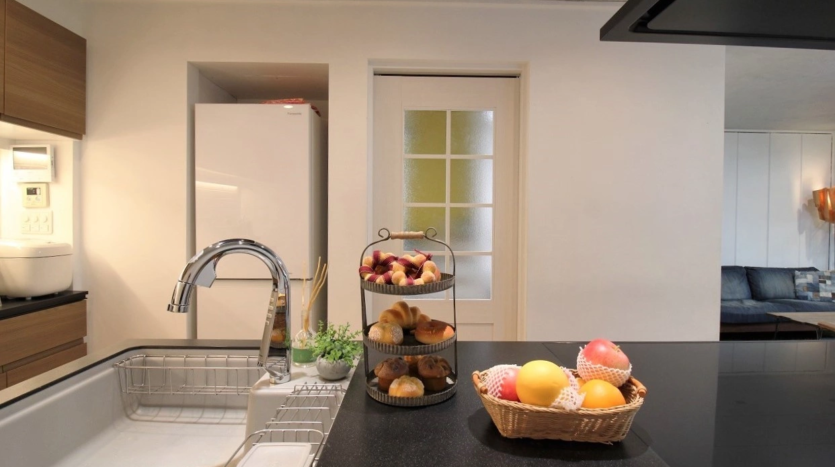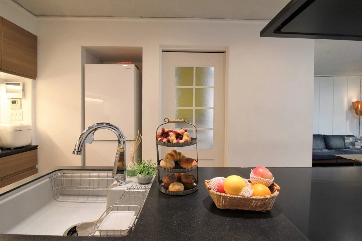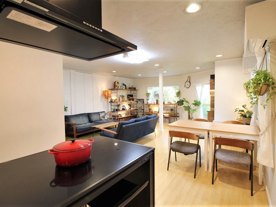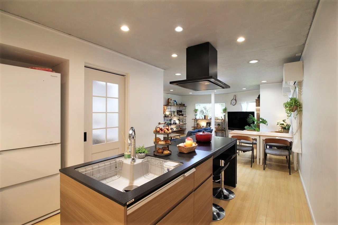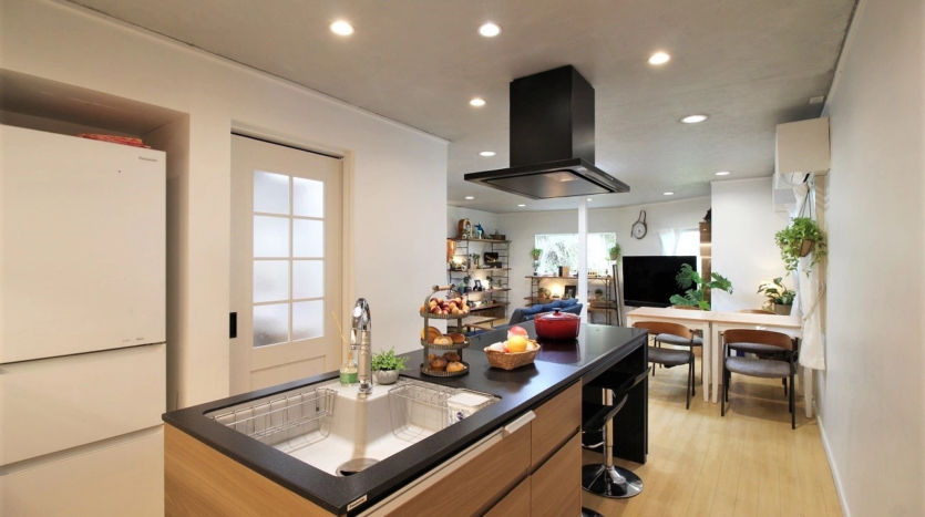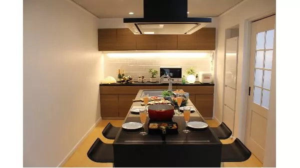 キッチンはIHアイランドキッチンを採用しており、両側から操作できるので調理シーンや食卓シーンの撮影をしやすいのがポイントです。