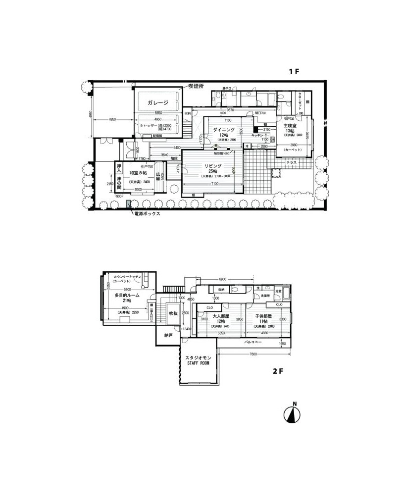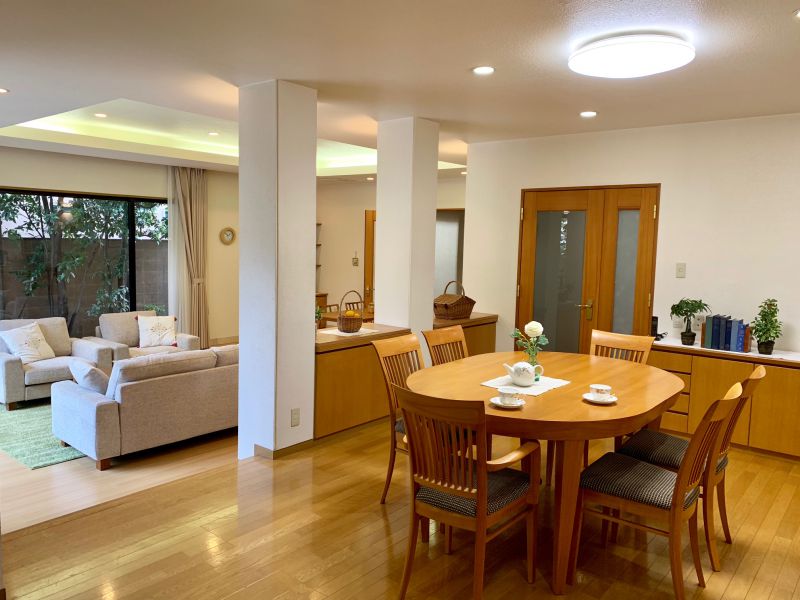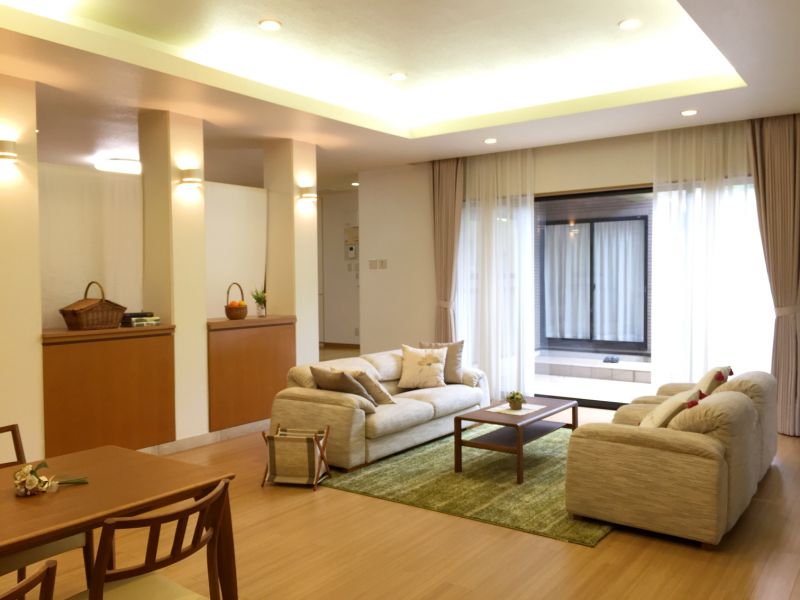 この他、広縁を設けた和室やベッドを二つ並べた明るい主寝室があり、家族のライフスタイルを表現する際に役立ちます。階段は吹き抜けを採用して開放感を演出。2階へ上がると簡易キッチン付きで広さ21畳の多目的ルームや子供部屋と大人部屋を設置しています。