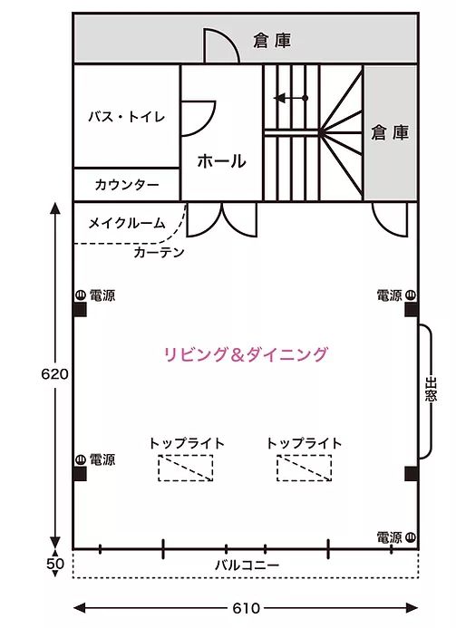 - スタジオ内にある家具・小物・植物などは、すべて撮影用の備品です。
