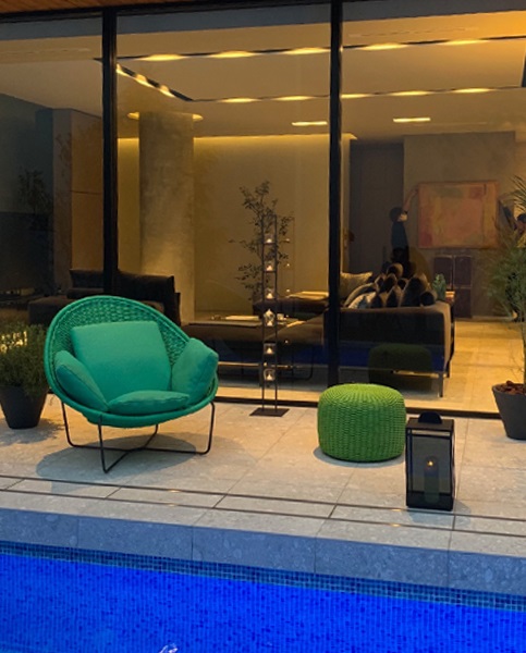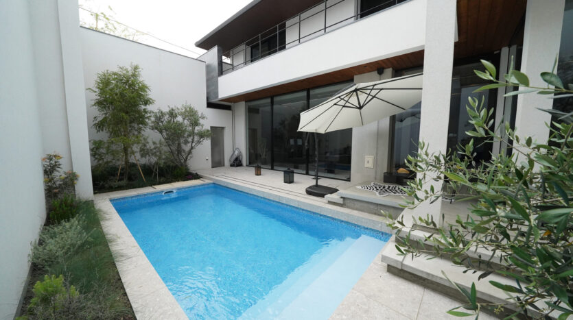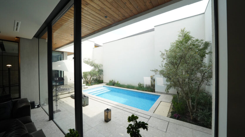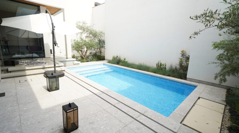 目黒区の高級住宅街に佇むプール付きハウススタジオです。天井高3.2mののびやかなリビングルームに面してプールを設けた贅沢な空間となっています。