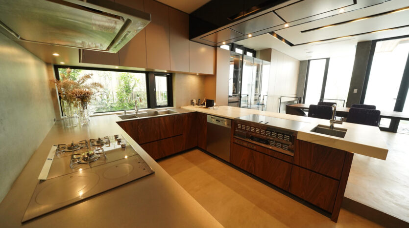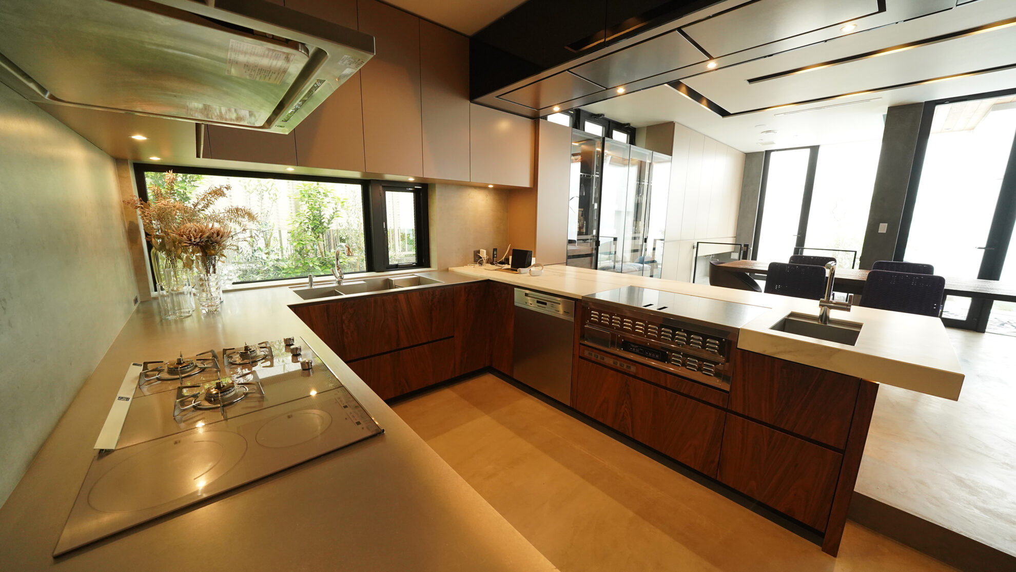 最新機能を搭載したamstyleのキッチンや、EuroCaveのワインセラー付きダイニングも撮影可能エリアとなっています。