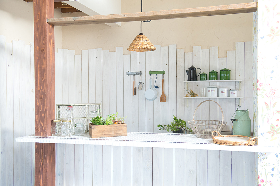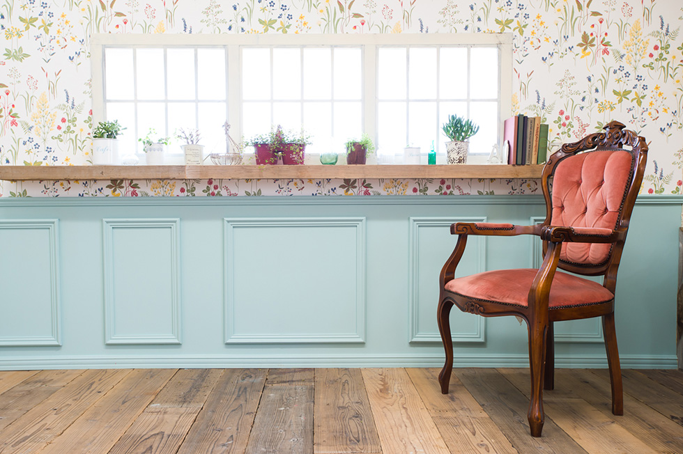 3階建て一軒家をパリのアパルトマンのようなイメージにリノベーションした空間は、ナチュラルなフレンチテイストが魅力的。広々とした空間に、ヴィンテージ家具やシャビーな風合いの床や板壁などがあり、使い勝手も抜群です。
