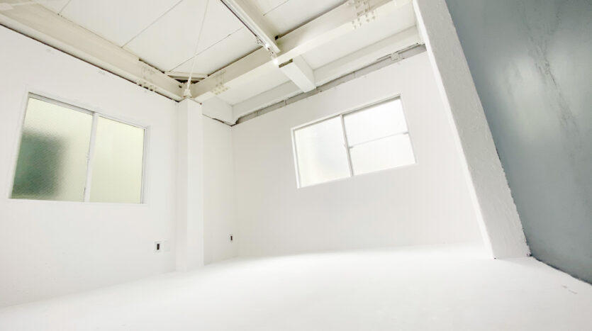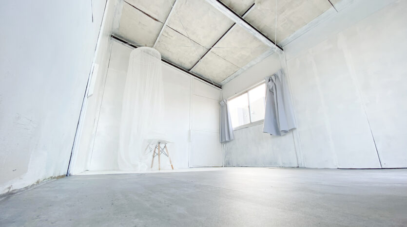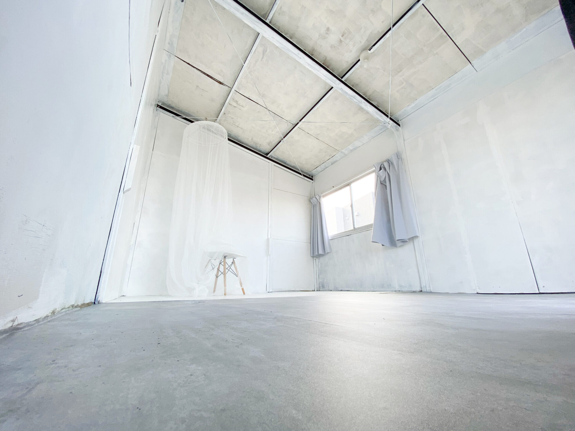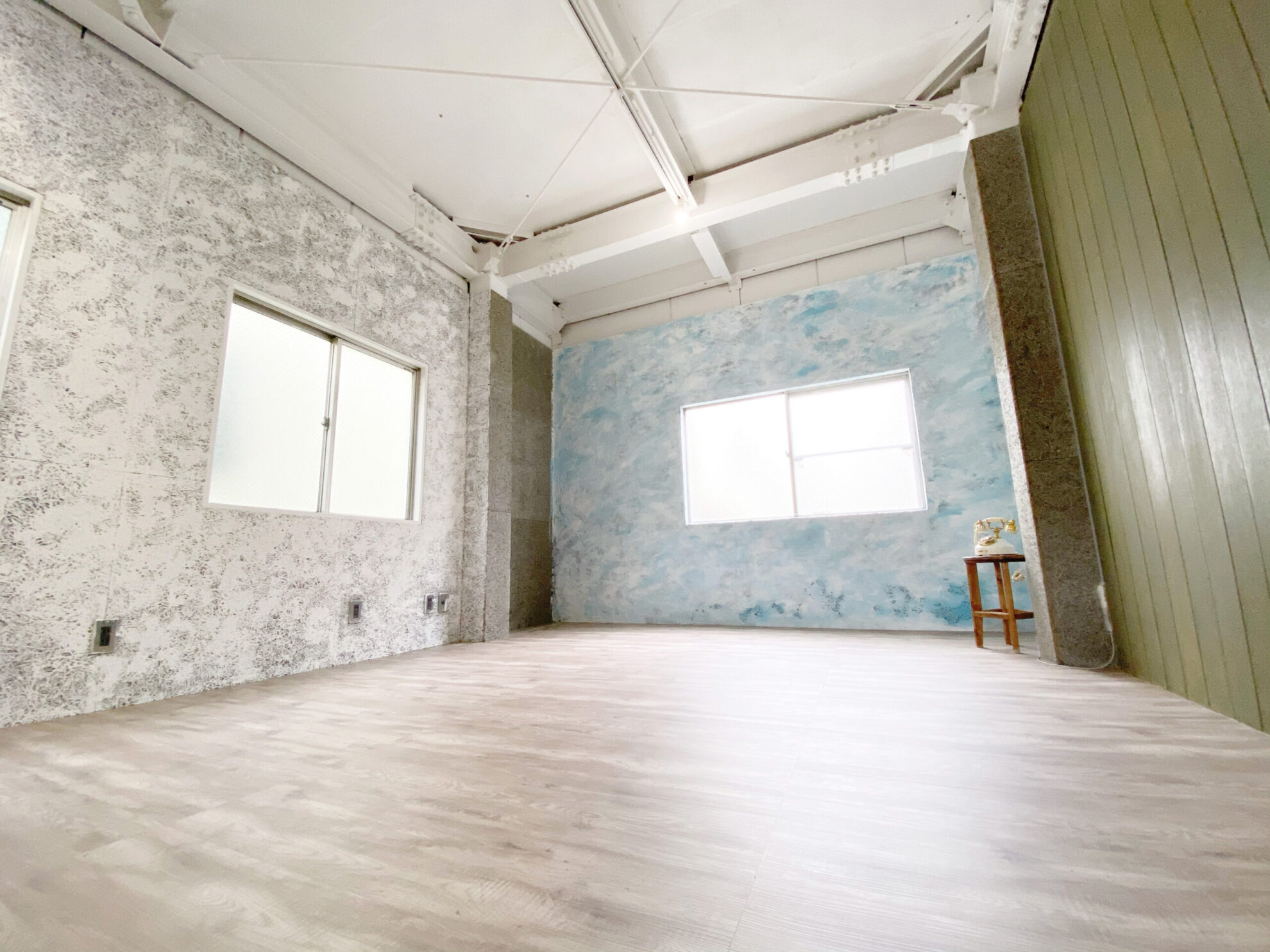 2階と3階がスタジオとなっており、2階は窓付きの白ホリスペース。片面の壁は撮影しやすいグレー壁で、光が回りすぎず使いやすい空間です。3階は、全ての壁面のデザインが違うスペースとなっています。天井高は約3mありライティングにもこだわれます。また、オートポールを使用して背景紙撮影も可能なので、色々な背景色にこだわりたいポートレート撮影やヘアカタログ撮影などに便利なスタジオです。