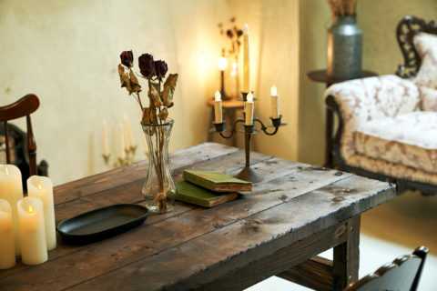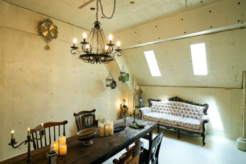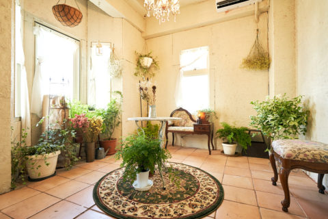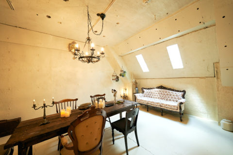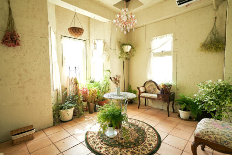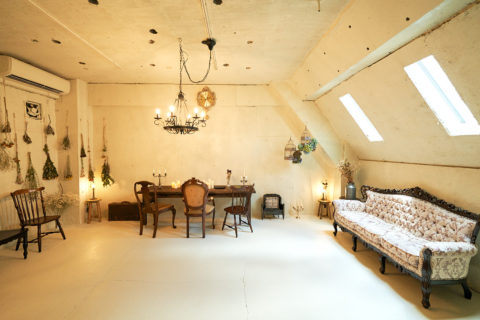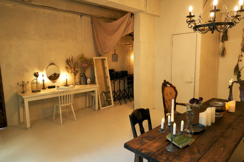 すべてのルームにアンティーク家具と小物が多く置かれ、豊富なドライフラワーとグリーンが彩りを添えます。天井高は3mあり俯瞰撮影やポートレート撮影、商品のブツ撮りにもおすすめ。また、閑静なエリアに位置し、高速なネット環境を有するので動画配信や同録も可能です。