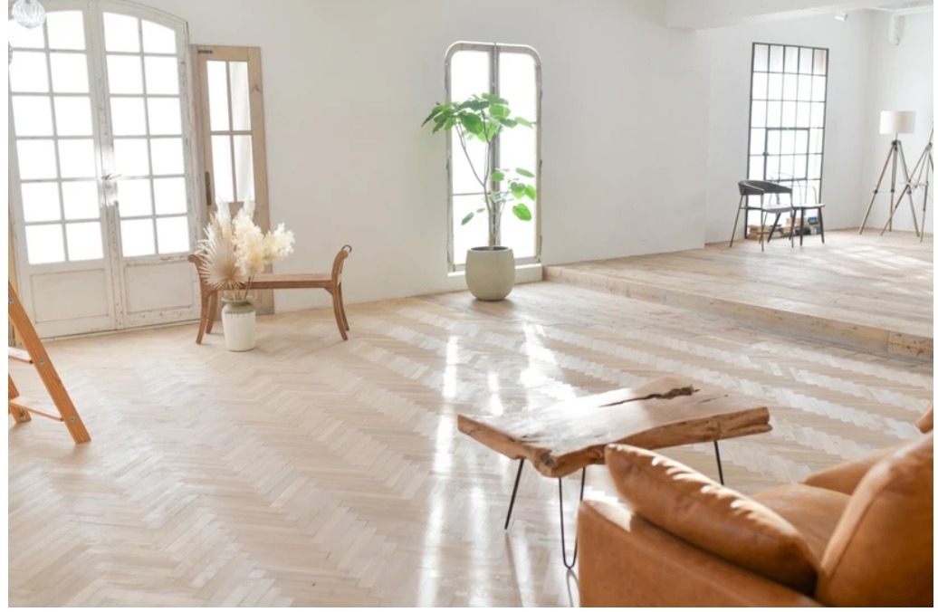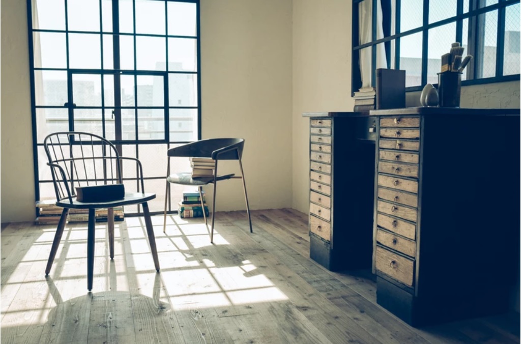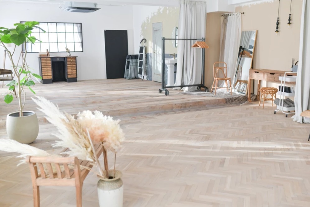 清澄白河エリアの一角にあるスタジオニニーは、大きな窓から自然光が差し込み、夕方以降は西日が伸びるのが特徴です。約80㎡の広々とした空間のため、引きのある画を撮影できます。