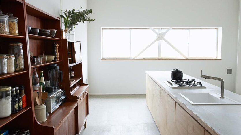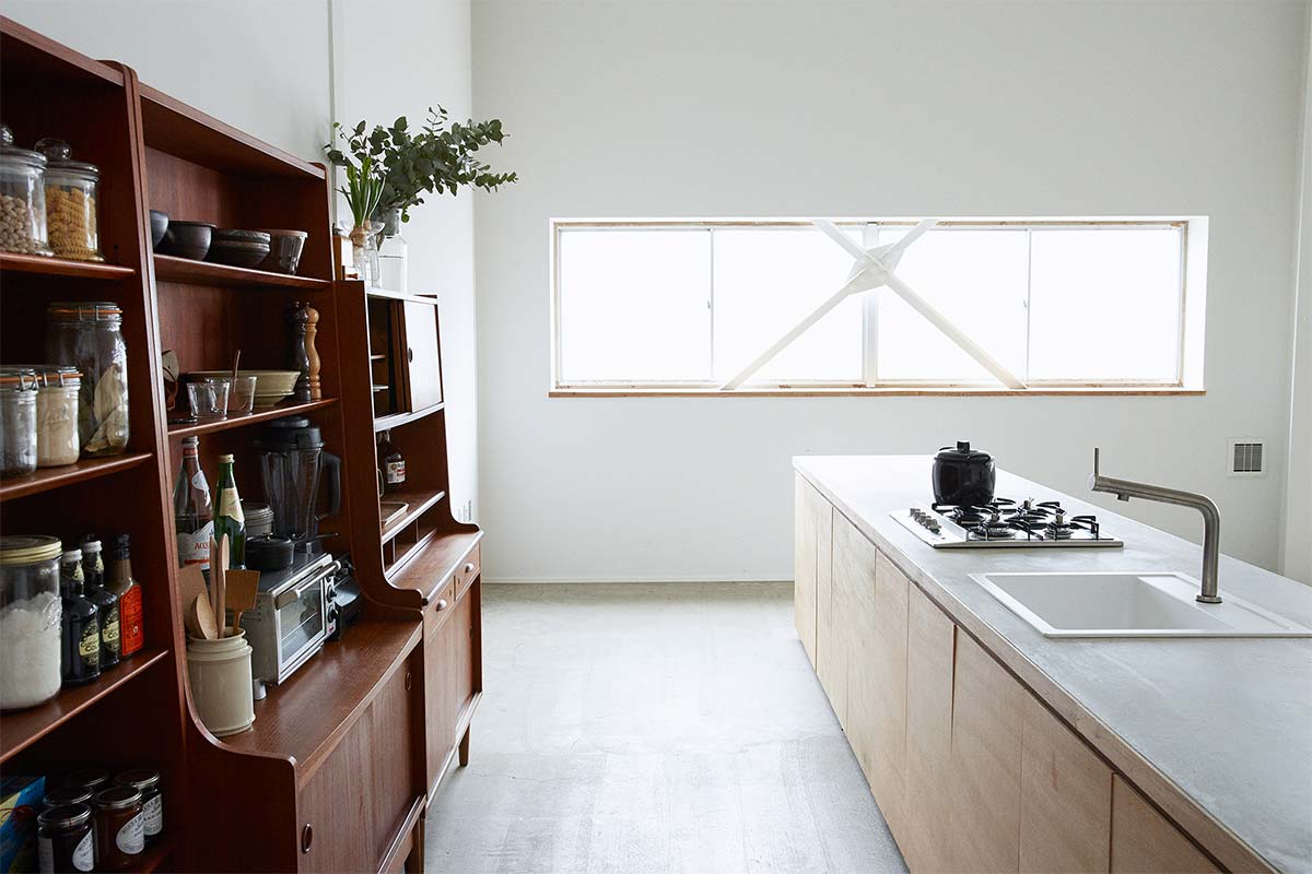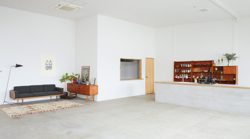 81㎡の広々とした空間にカウンターキッチンを設け、シンプルで使いやすい設計になっています。東側には窓を豊富に設置しており、自然光での撮影も可能です。備品には、風合いのある家具や食器類が充実していて、無料で使用できるのもポイントです。