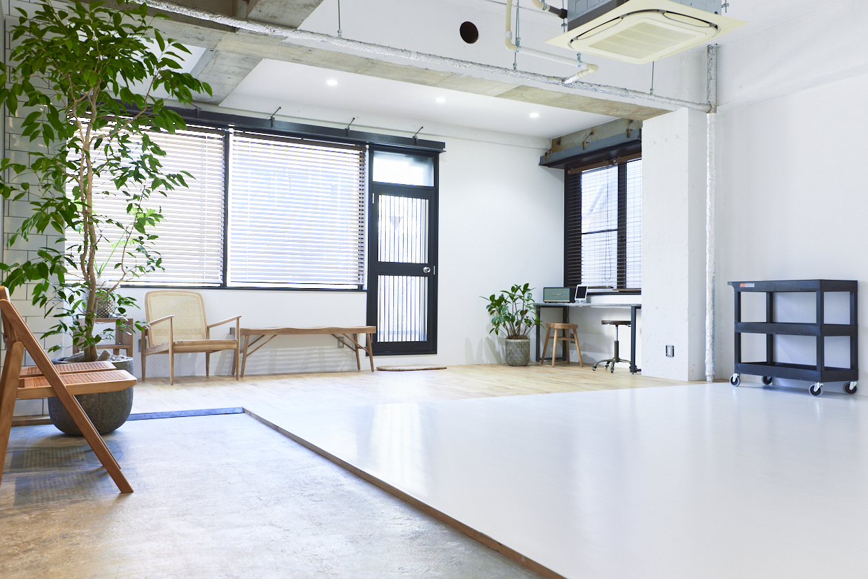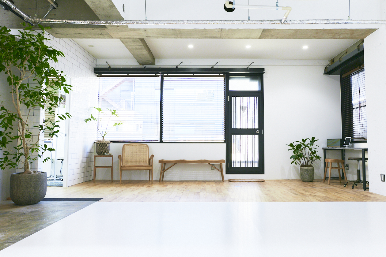 スタジオ内は、天然木のフローリングと漆喰壁が調和した空間が魅力です。自然光の入る時間帯もあり、定常光や瞬間光といった照明機材なども充実しているため、光の演出を自由にできます。