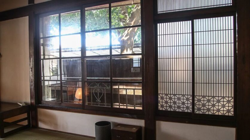 一階には今では見かけることも少なくなった八畳と六畳の二間続きの和室と小さいながら雰囲気のいい洋室があります。ノスタルジックな木製の窓枠とすりガラスの入った障子が自然光をやわらかで温かみのある光に変えてくれます。