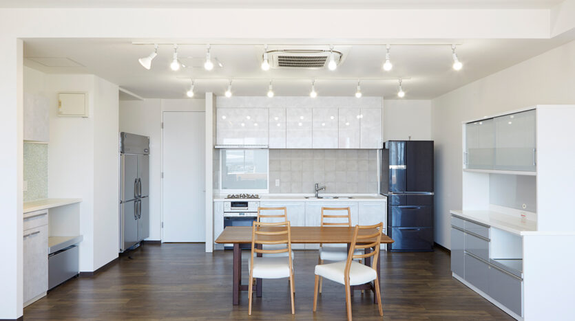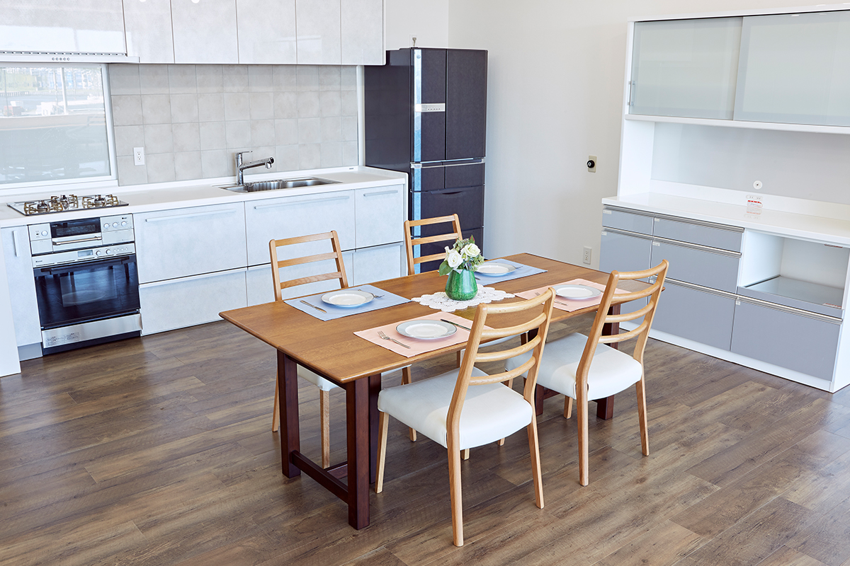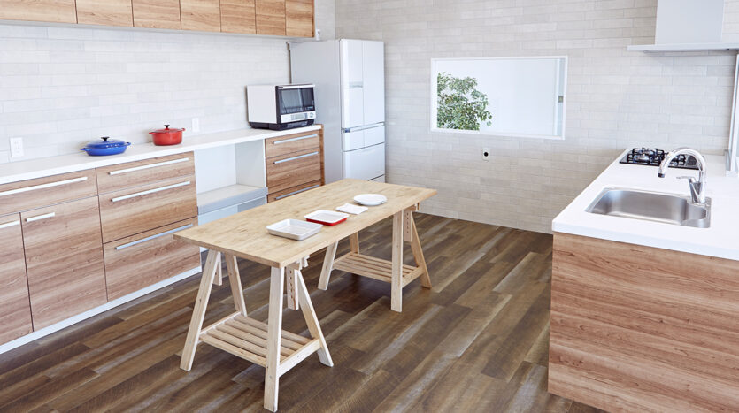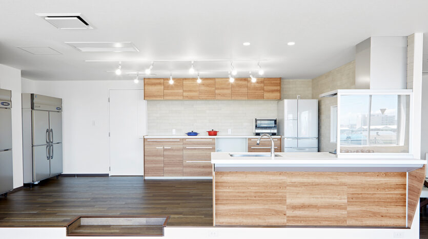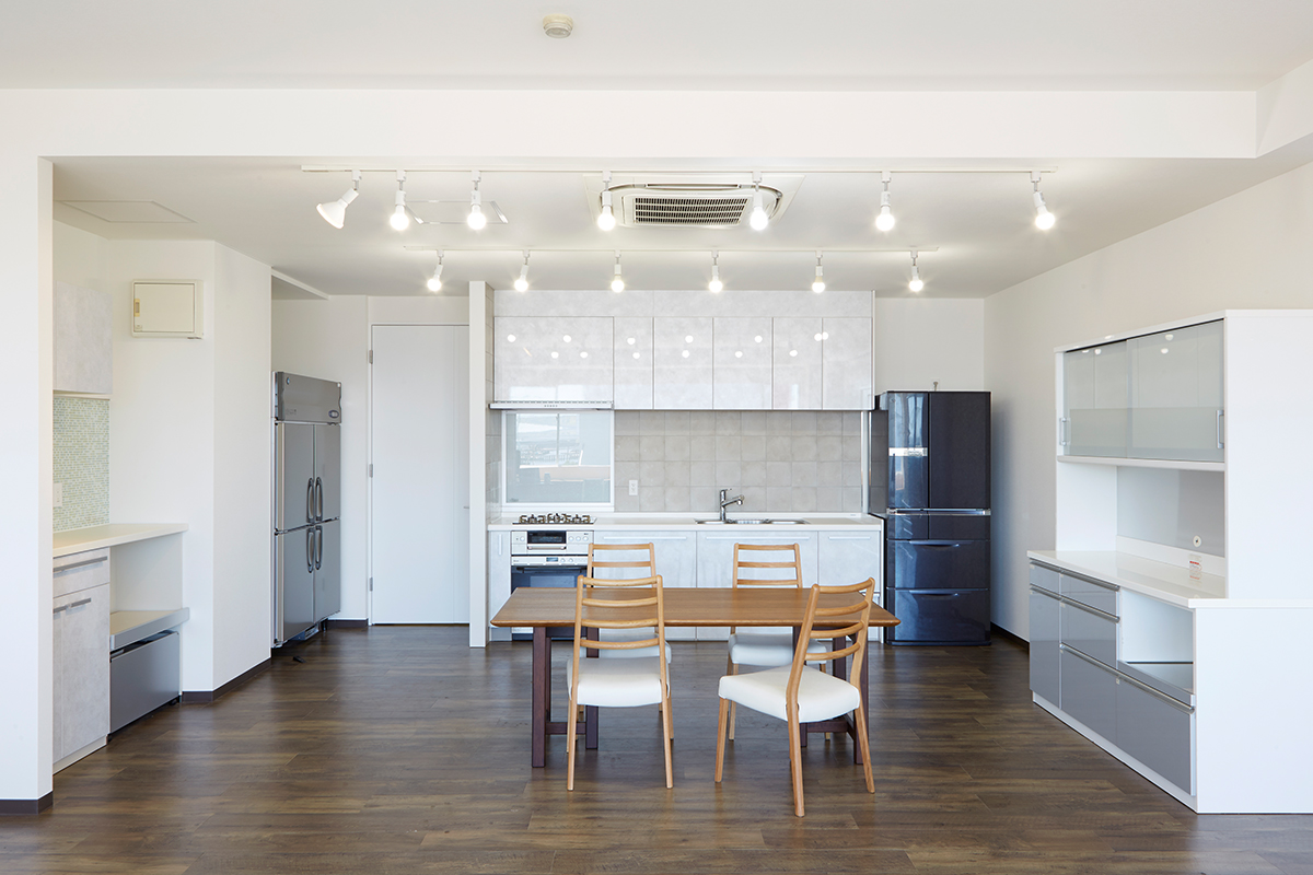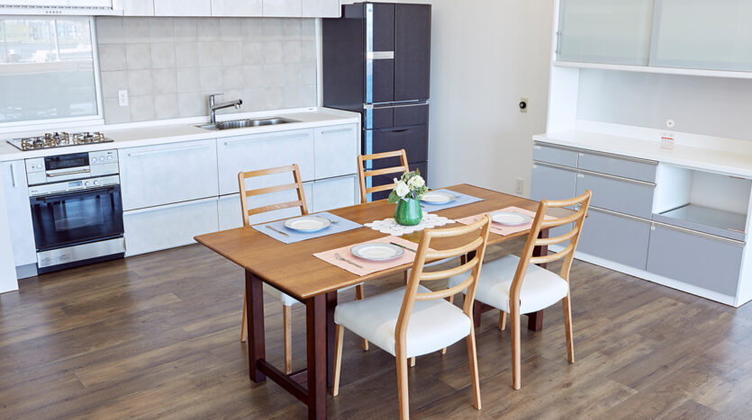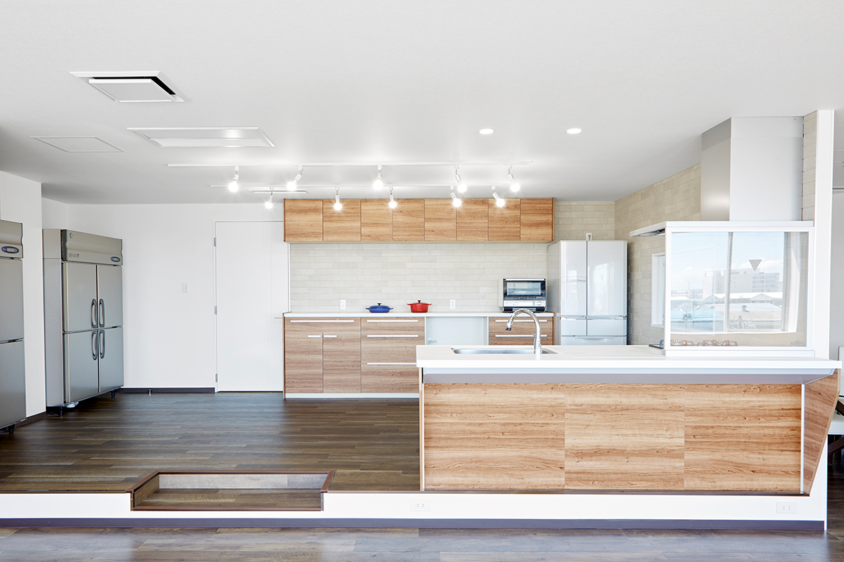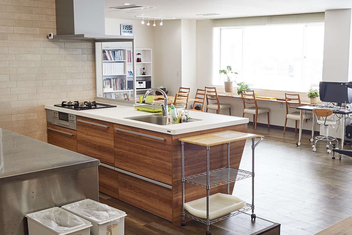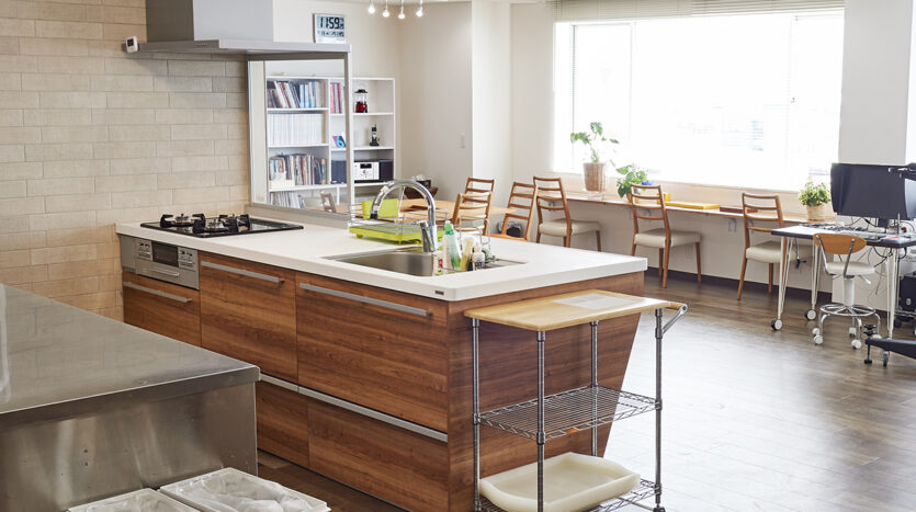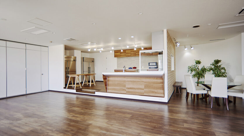 5階にあるキッチンスタジオは、新木場エリアを一望できる南東一面に広がる大きな窓から自然光があふれます。清潔感があり使い勝手のいい本格的なキッチンが2セット備えられ、調理シーンのほか、調理グッズや台所家電のブツ撮りの他、広いダイニングスペースやカウンター席を使ったカフェシーンの撮影やパーティシーンにも適したスタジオです。