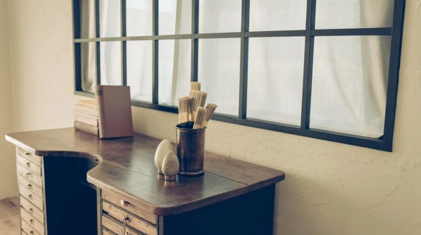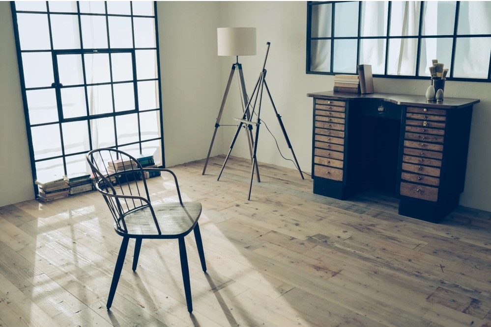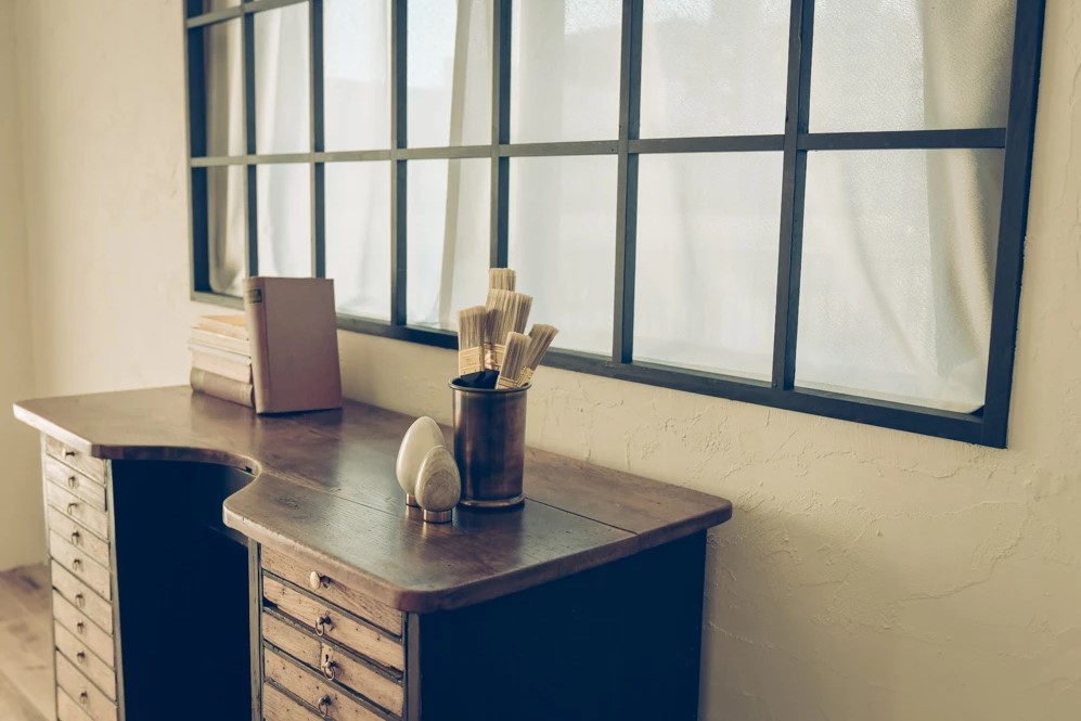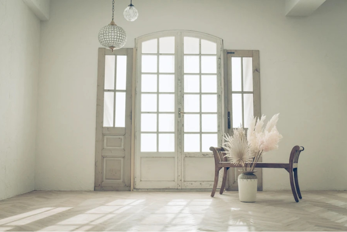 本物志向、被写体の魅力を引き出す雰囲気のある素材達。約80㎡の白を基調とした室内に無垢のヘリンボーンと足場古材に分けられた床、たくさんの観葉植物や古書、アンティークドア、そしてヴィンテージのデスクやソファベッドなどこだわりの家具類で多彩なシーンを撮影可能です。