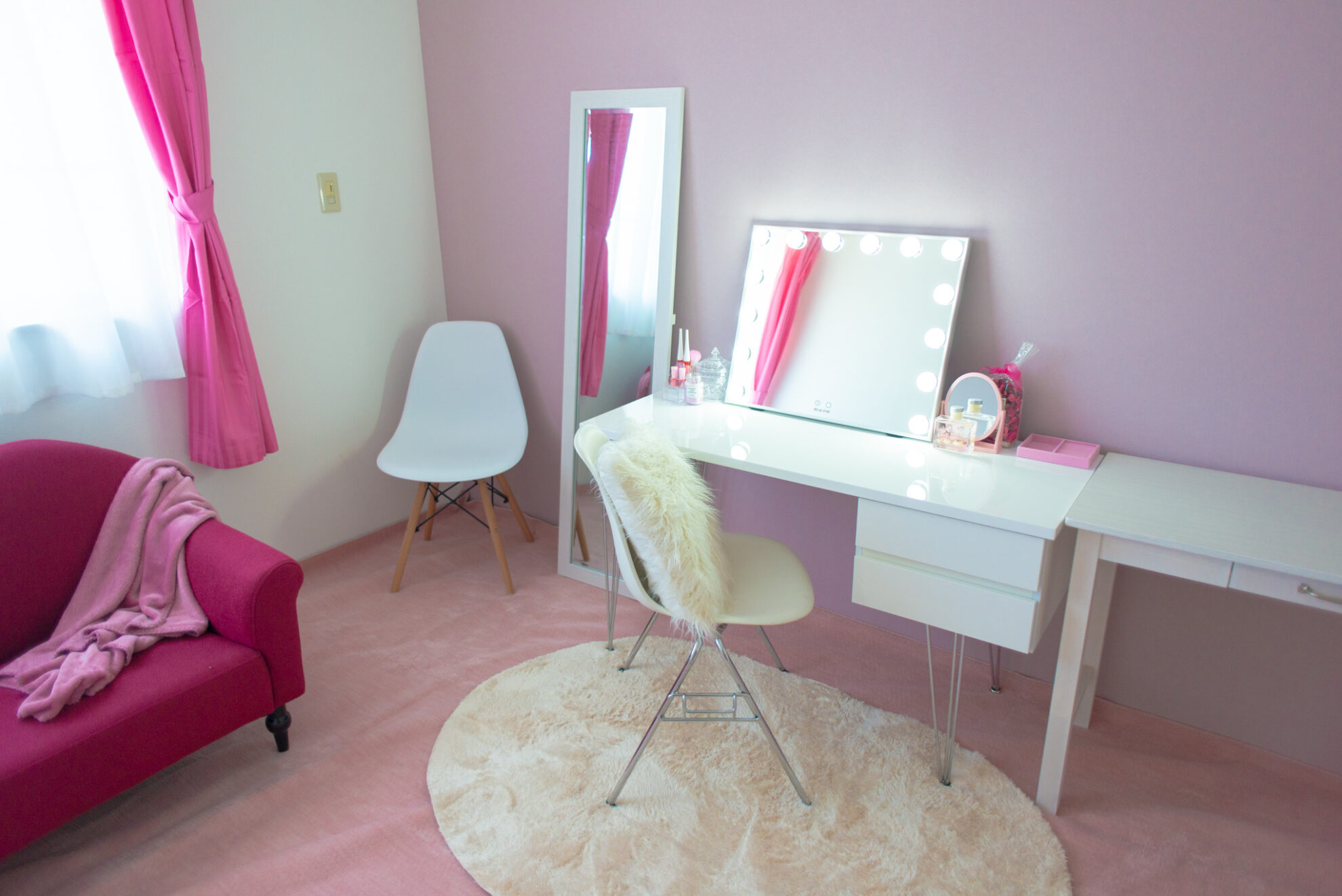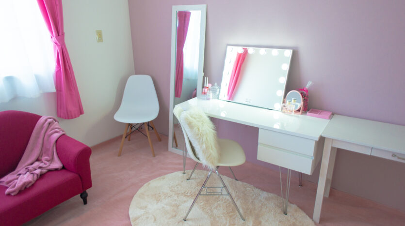 2階には洋室が3間あり、柄付きのクロス、ガーリーなピンク色、ブルーグレー色に貼り分けられ、背景を変えた撮影にも対応できます。また、メイキングスペースやレストルームとしても利用できます。