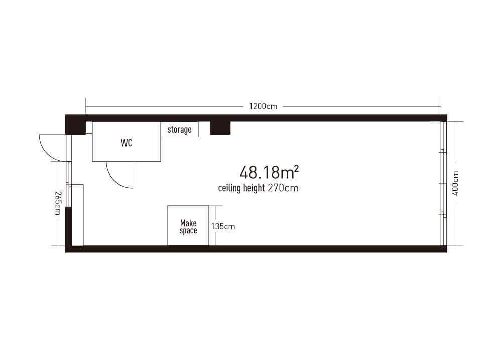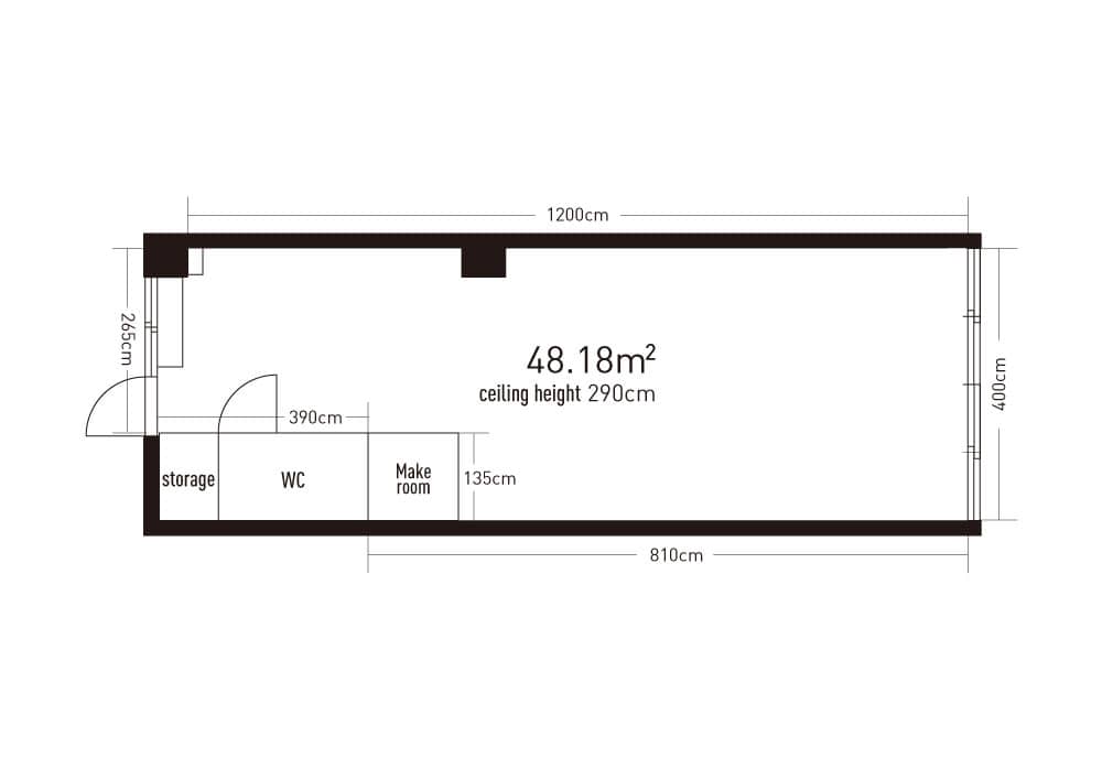 どちらも広さは48.18㎡、天井の高さは2.9mあり、引きも十分に撮れる規模感ながらもリーズナブルな料金が魅力です。