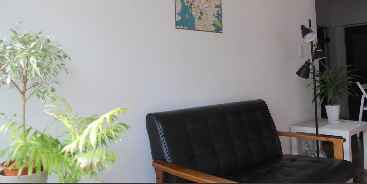リビングやキッチン、ベッドルーム、シャワー、洗面台など空間全体が撮影可能。室内は白い壁でアメリカンヴィンテージやグリーンなどの小道具もあります。