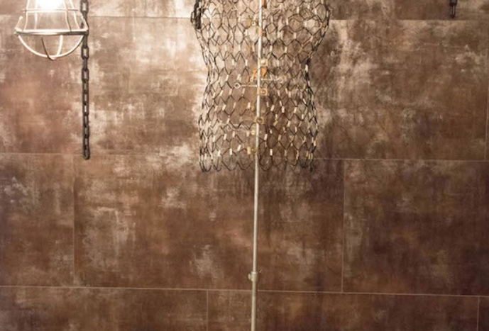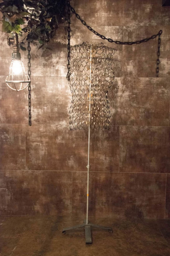 床や壁面を錆のような色合いにまとめたブースです。裸電球や壁面に飾ったチェーン、枯れ草などの小道具が廃墟感を醸し出しています。
