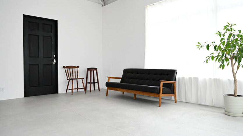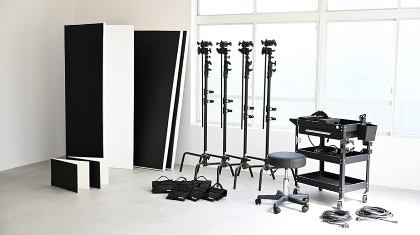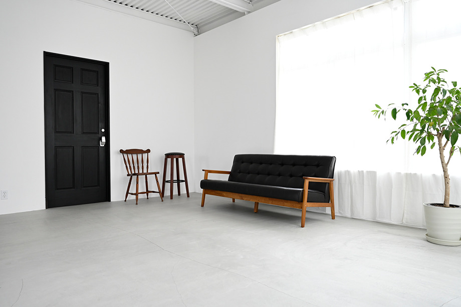 明るくシンプルな空間に映える、ソファやスツールなどの家具も充実しており、無料で利用できるのが魅力。さらに、LEDライトやストロボ他、撮影機材も無料で貸し出ししてくれます。