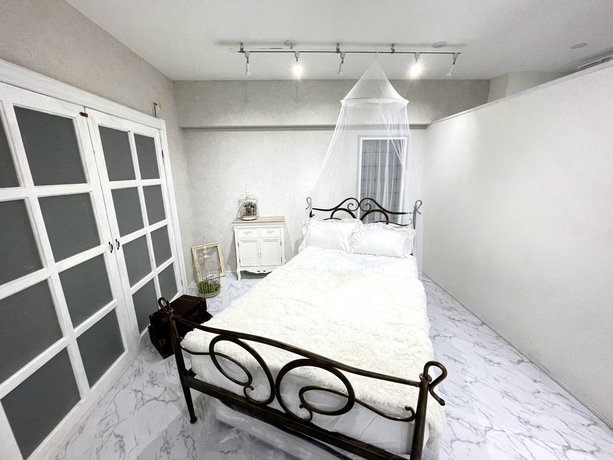 大理石調の空間は白を基調にした内装が特徴で、可動式の壁も揃っています。また、ベッドや浴槽などを設置しており、午前中から昼過ぎにかけては自然光も豊富な時間帯となるなど、バリエーション豊かな撮影が可能なスペースです。