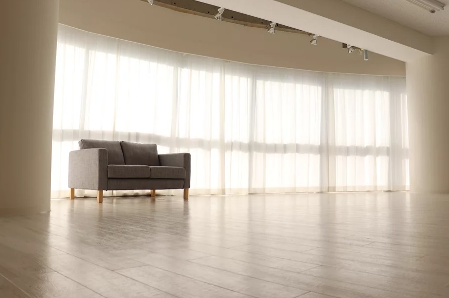 スタジオ内は200㎡超の大空間で、一面には大きな窓があり、明るく開放的な雰囲気。窓からの日差しが入るので長時間自然光での撮影ができます。