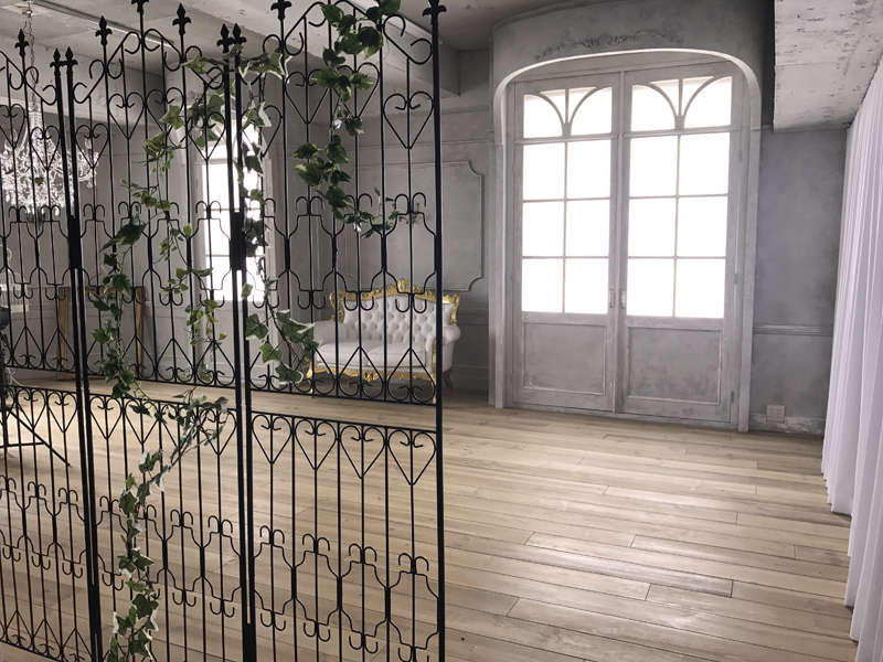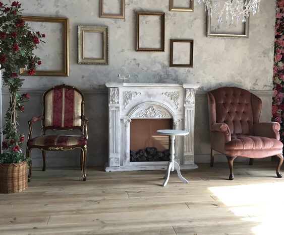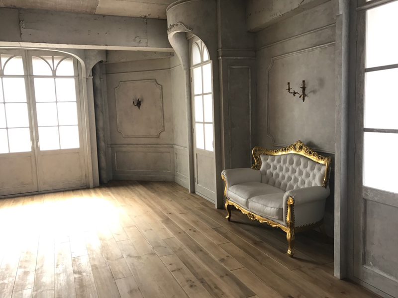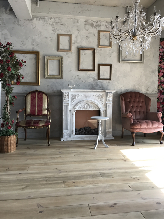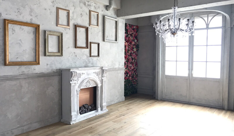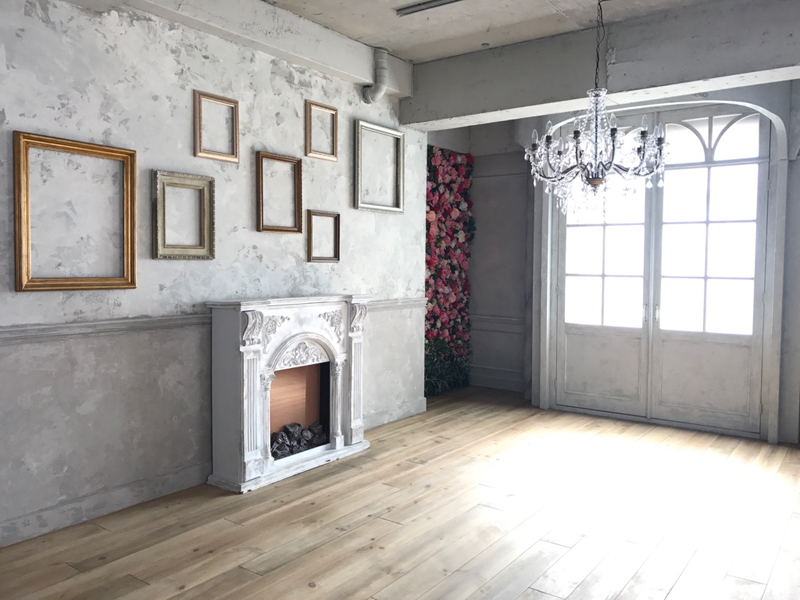 フローリング床にモールディング壁や風合いのある壁面が特徴です。窓からは優しい光が差し込み自然光での撮影も可能。小道具としてマントルピースやフレーム、フェンス、グリーンなどたくさんの種類があり、おしゃれな雰囲気に演出できます。