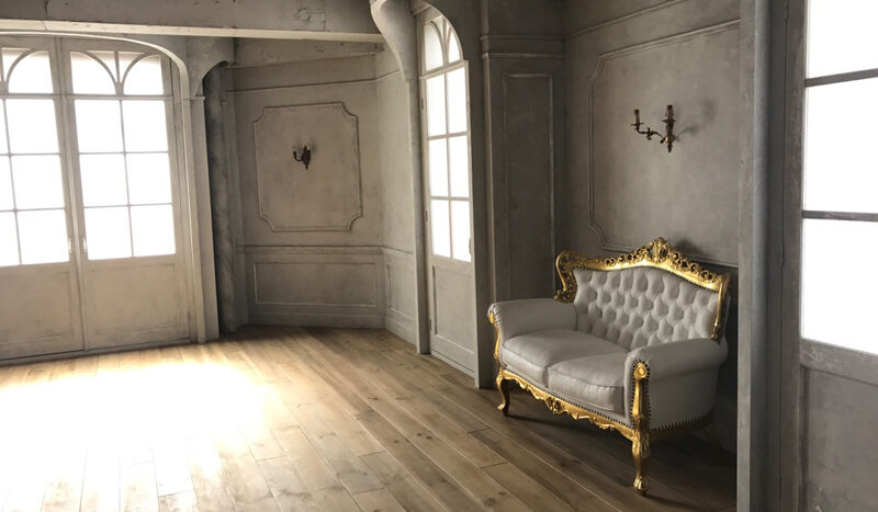 プロットアート2は、福生駅目の前にある撮影スタジオです。スタジオ面積は約118平米の広々とした空間で洋館エリアと廃墟エリアに分かれています。定常光や三脚、レフ版など撮影機材の他、家具や小道具も充実した品揃えで、いずれも無料で使用できます。